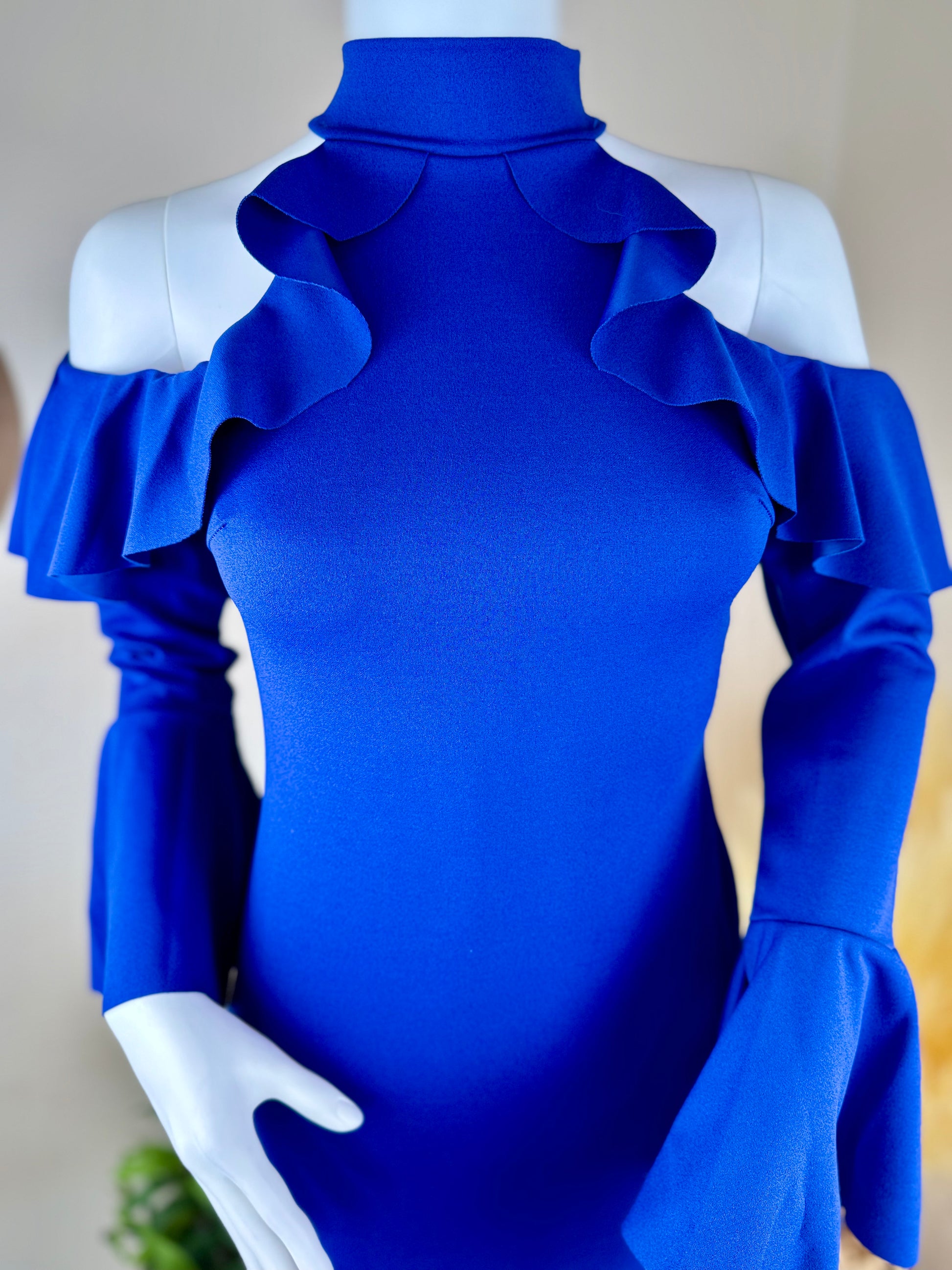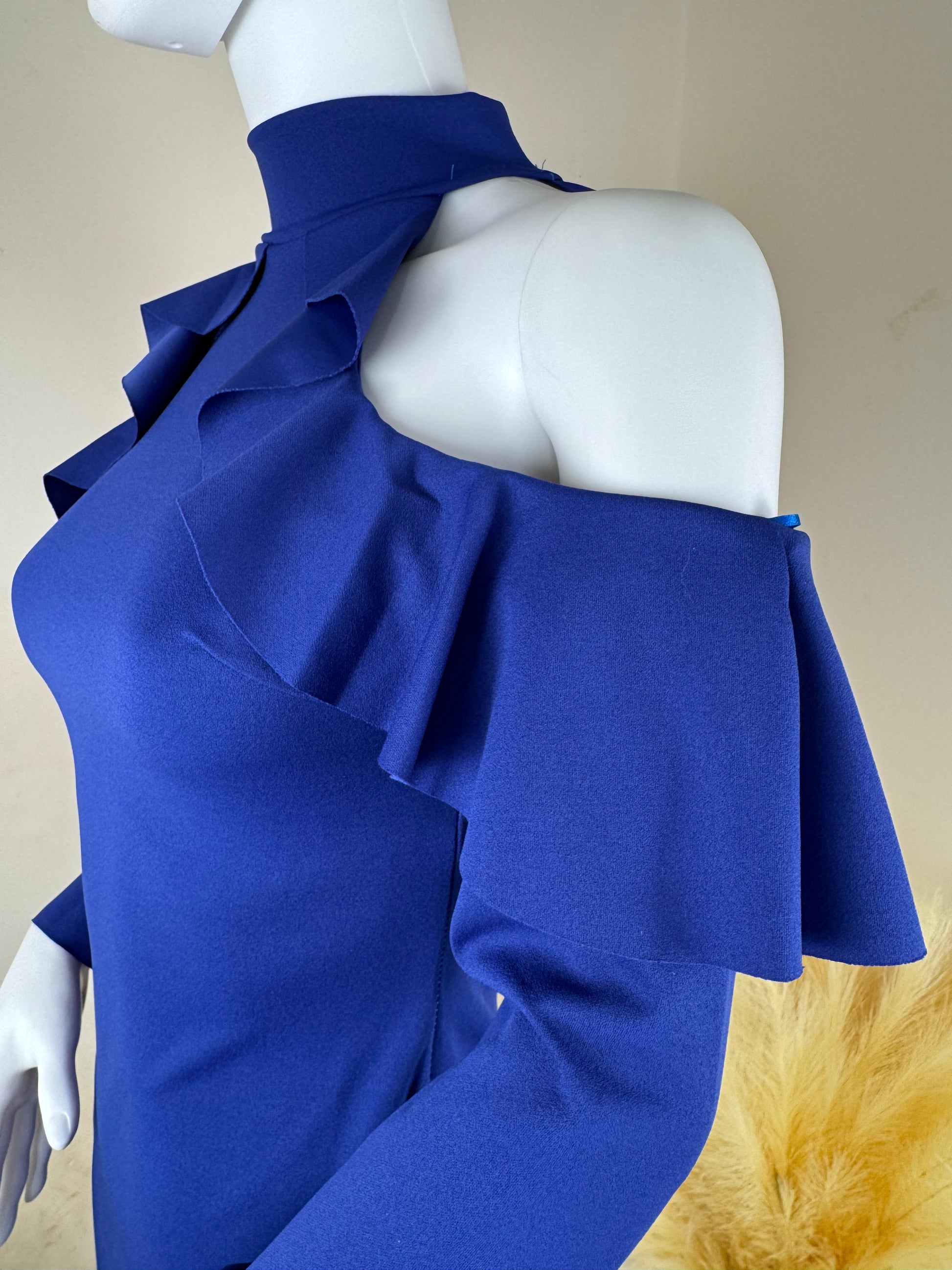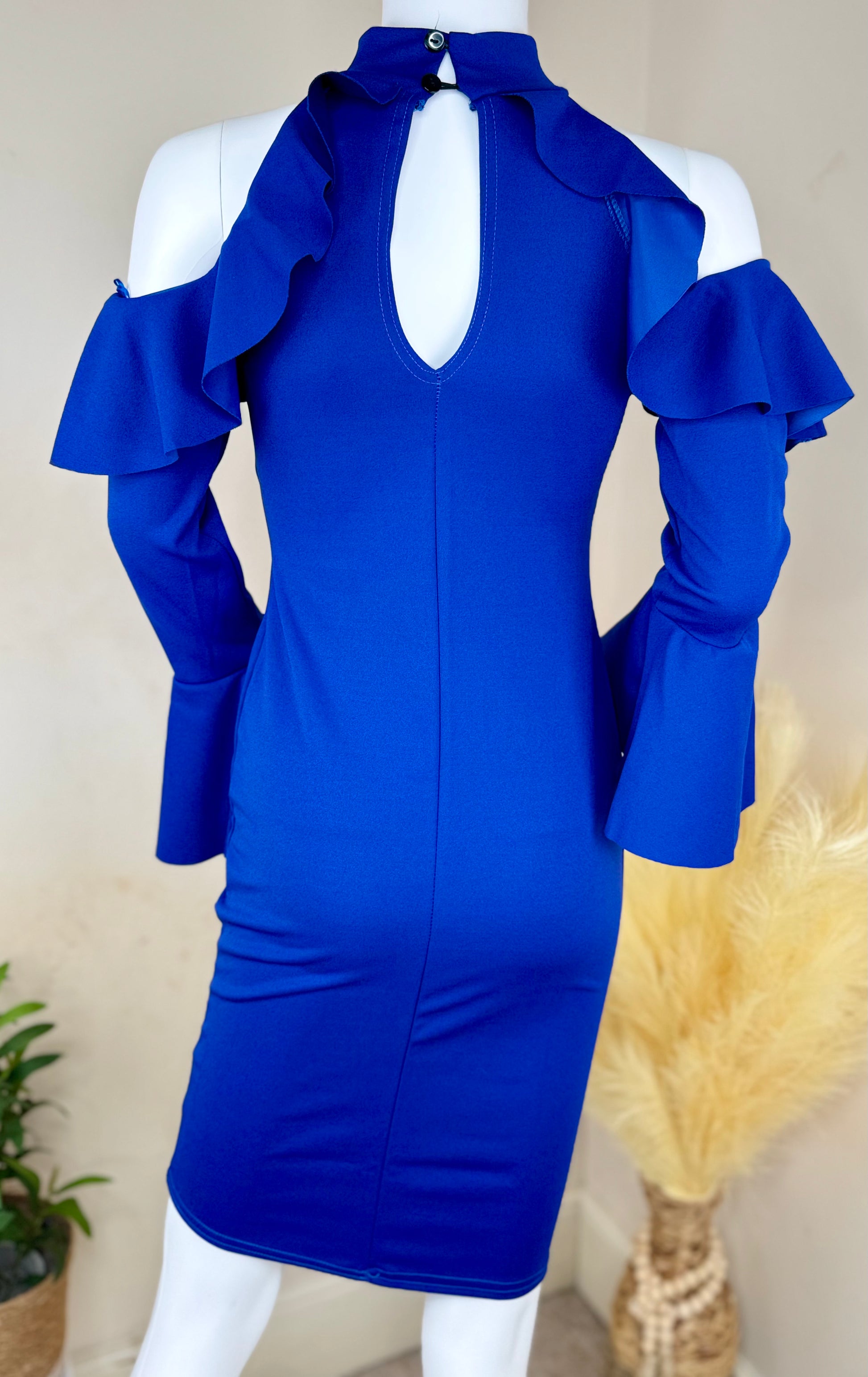 Women’s Blue Bodycon Dress – Cold Shoulder, Frill Sleeves – UK Size 8