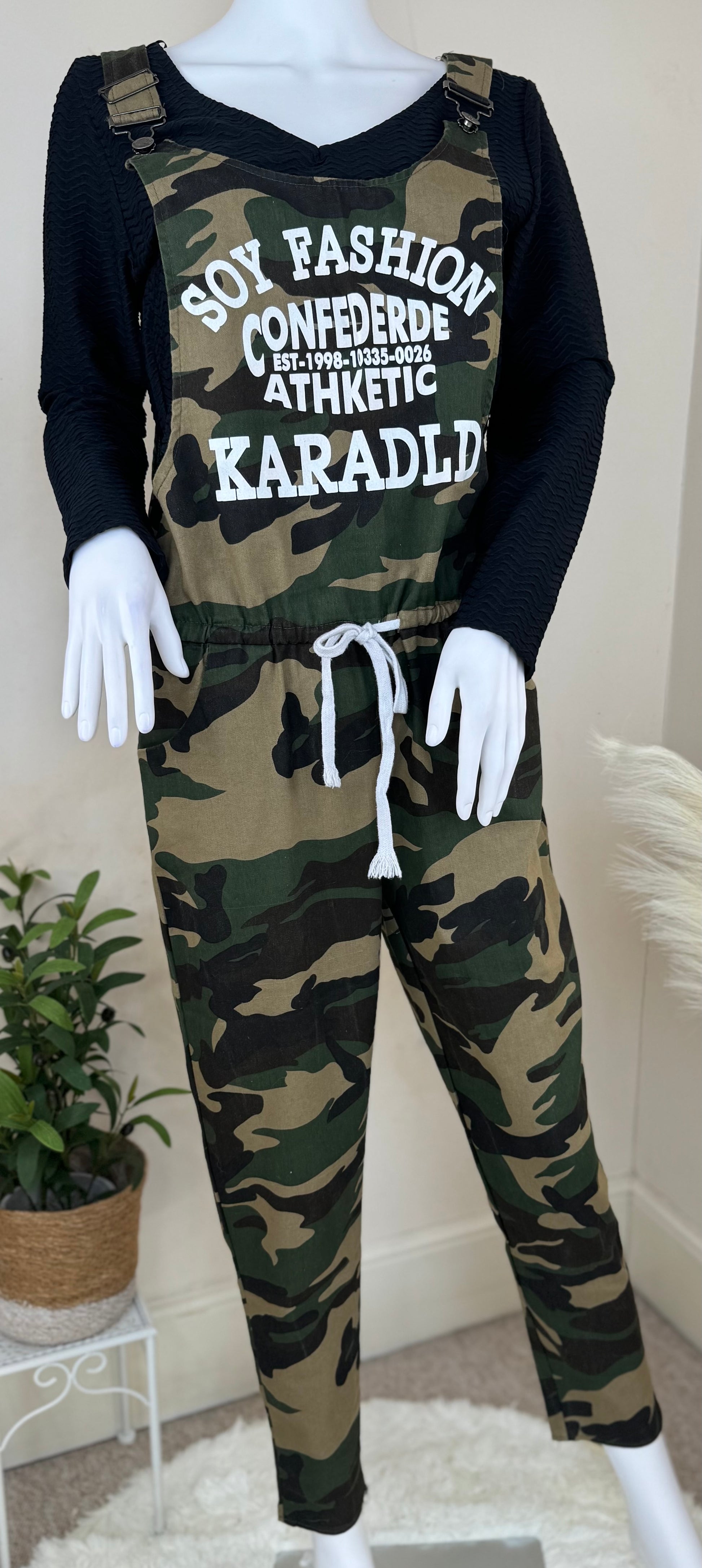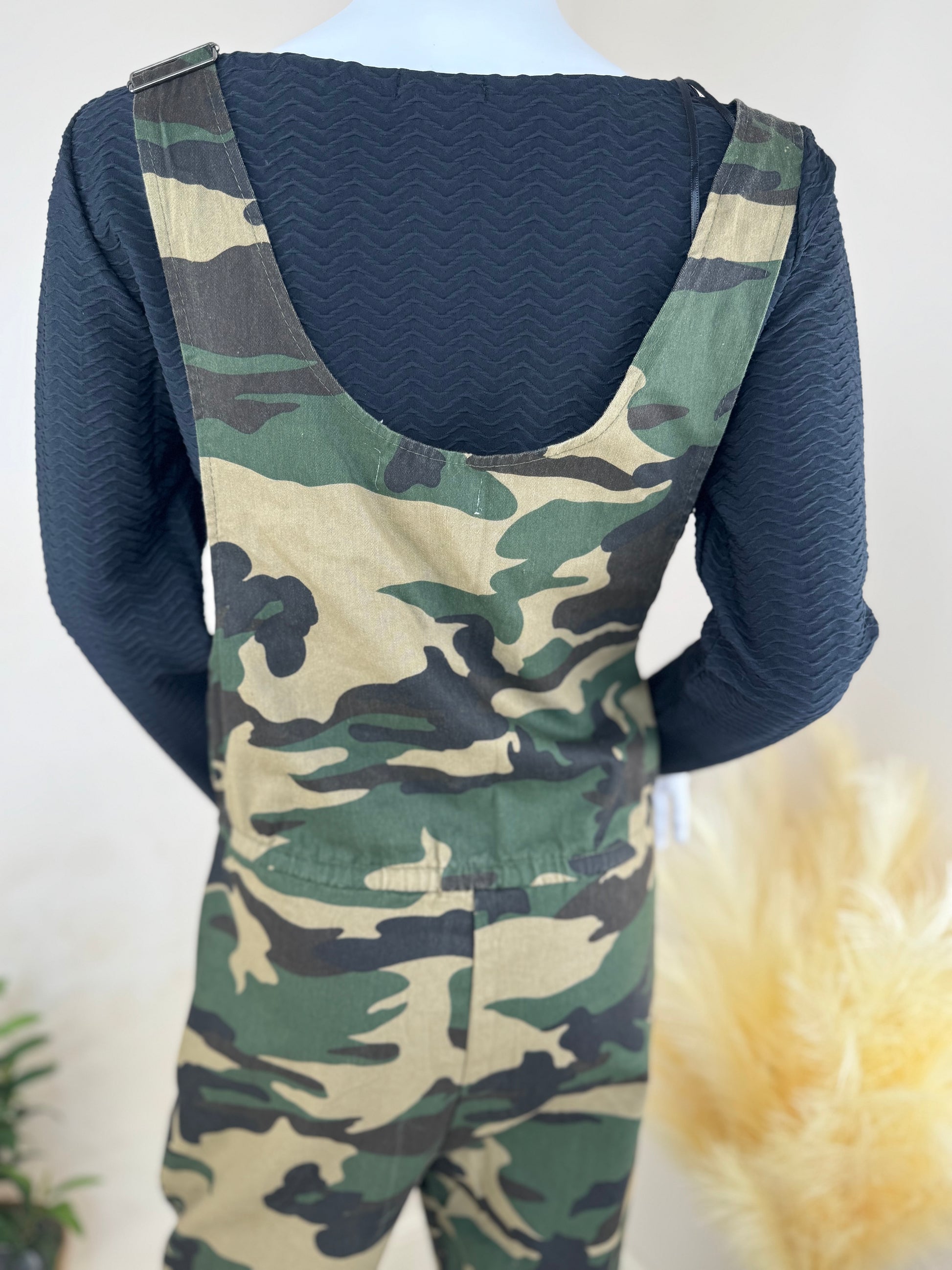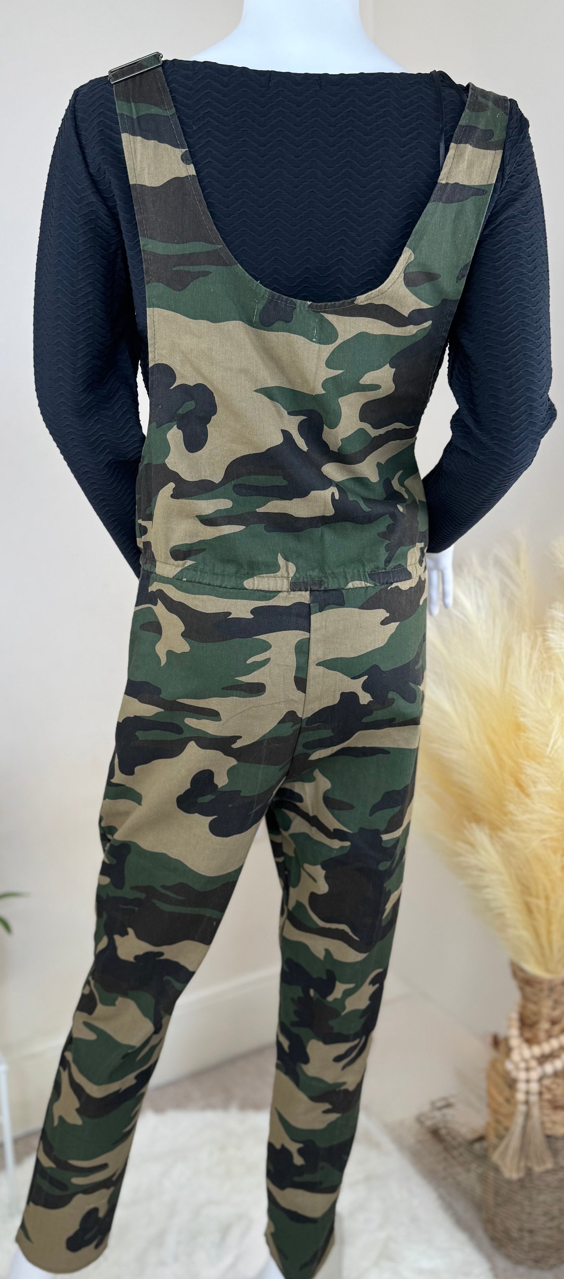 Women’s Camo Utility Jumpsuit – Cargo Style with Adjustable Straps (UK 8)