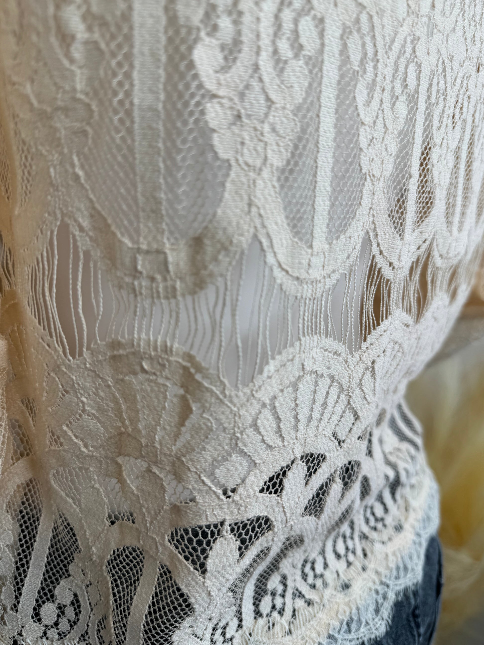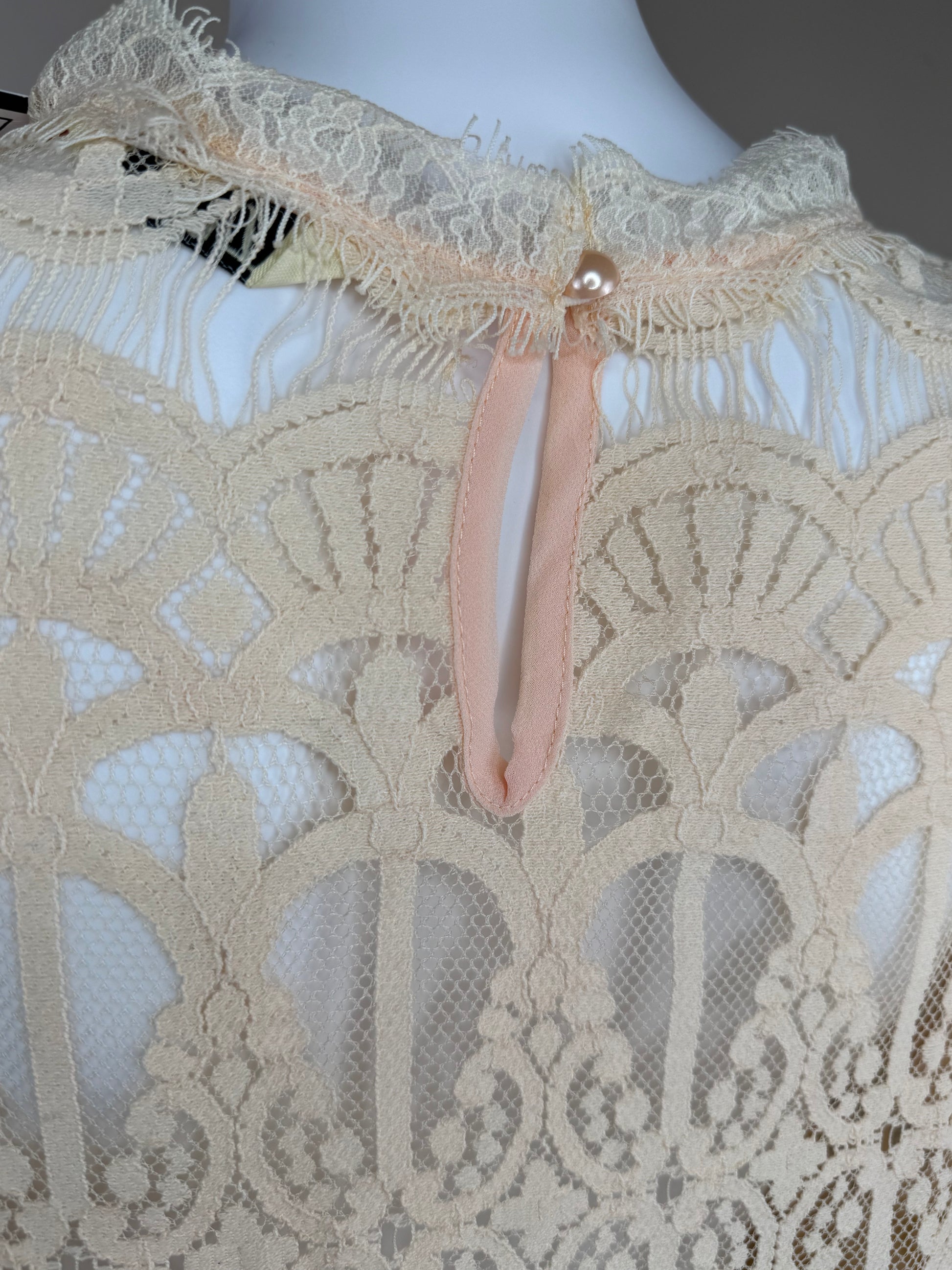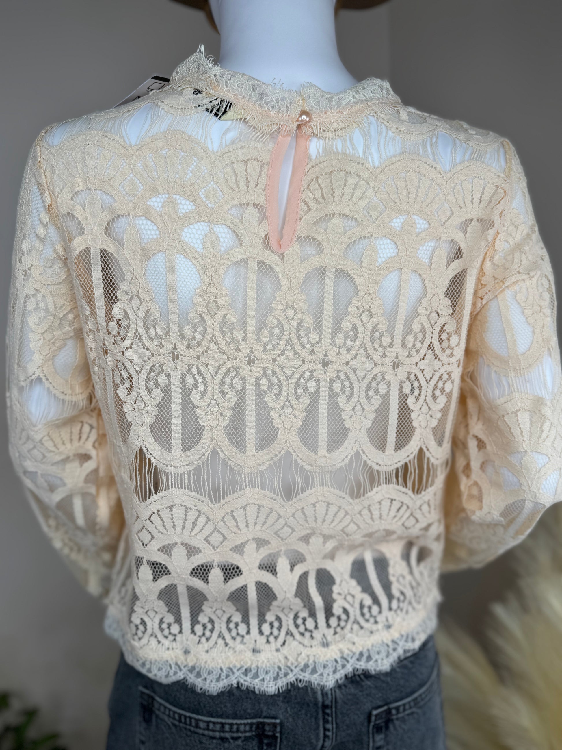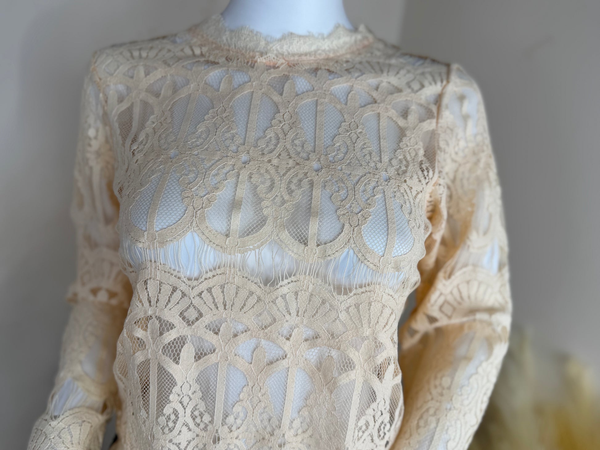 Women’s Lace Blouse – Sheer Long Sleeve Top Ivory UK 10/12 Elegant Occasion Wear