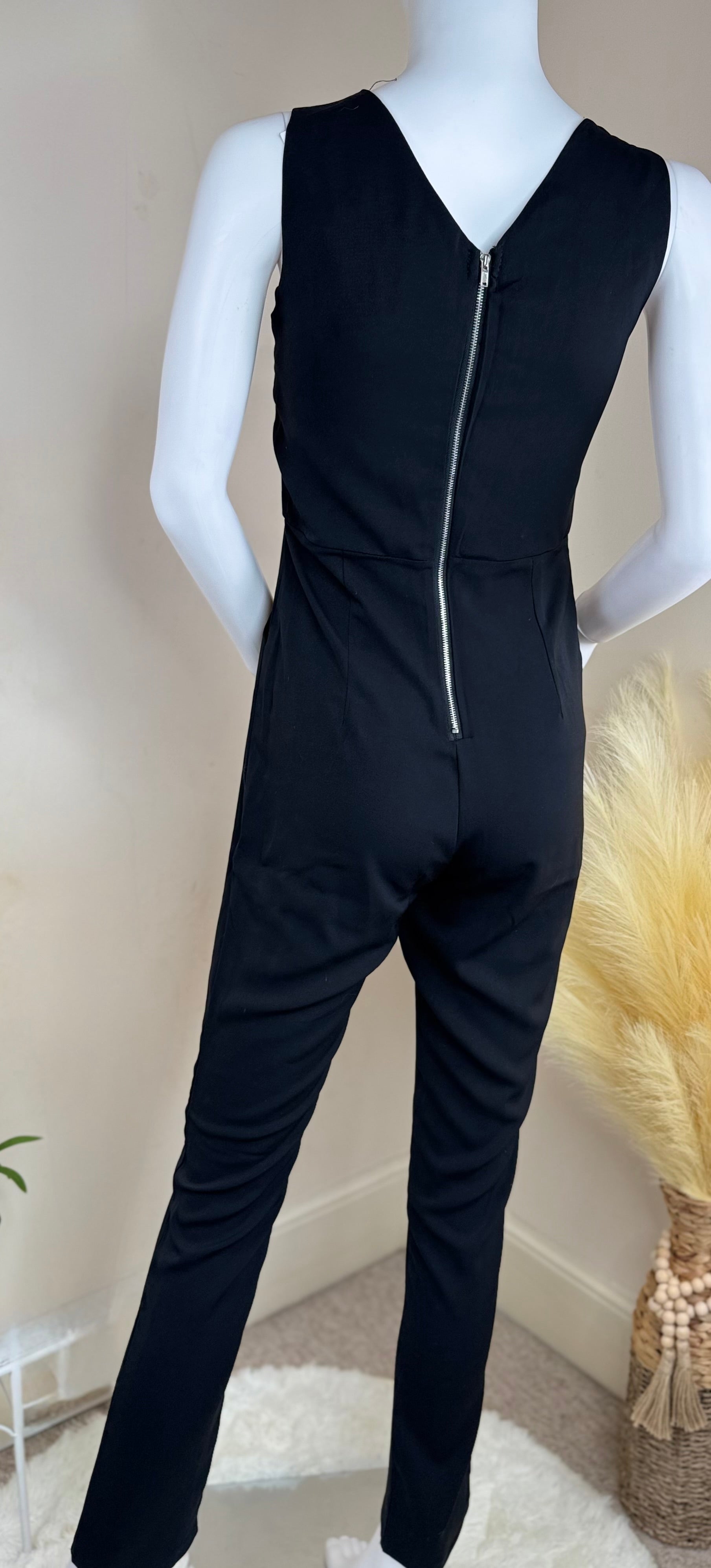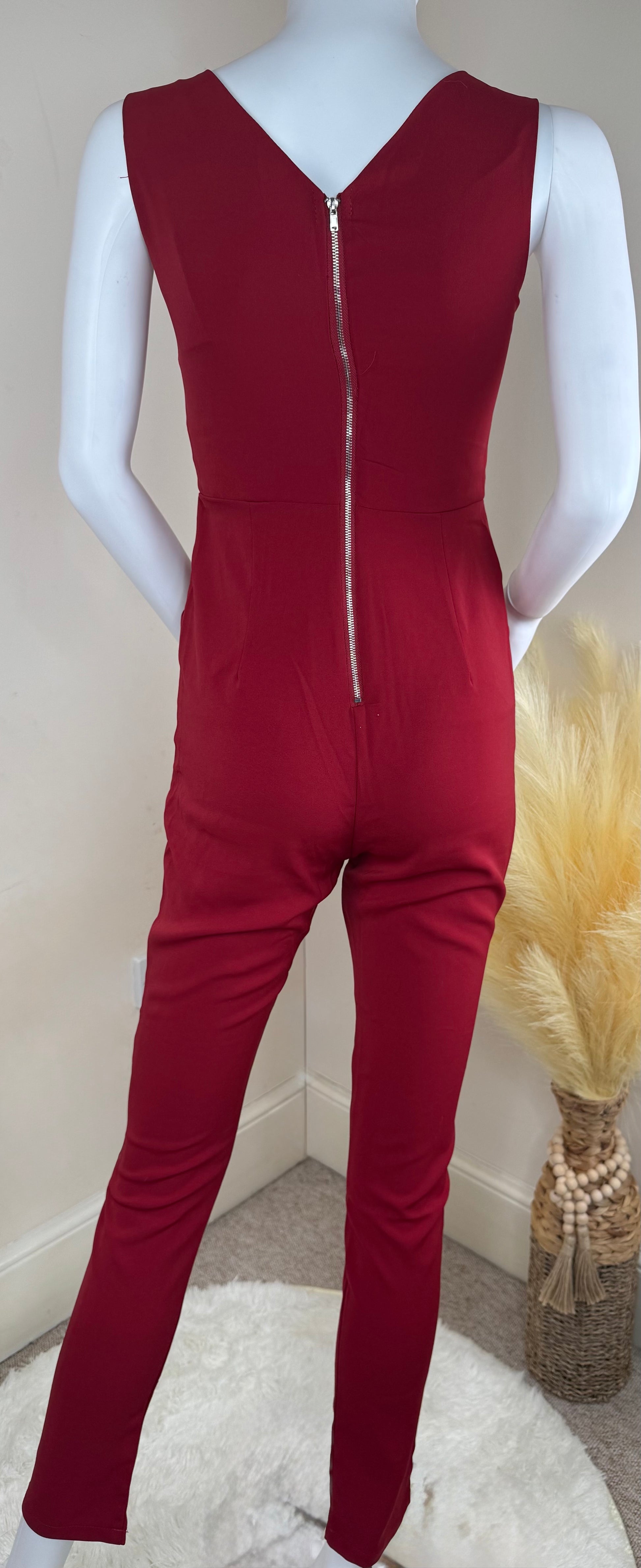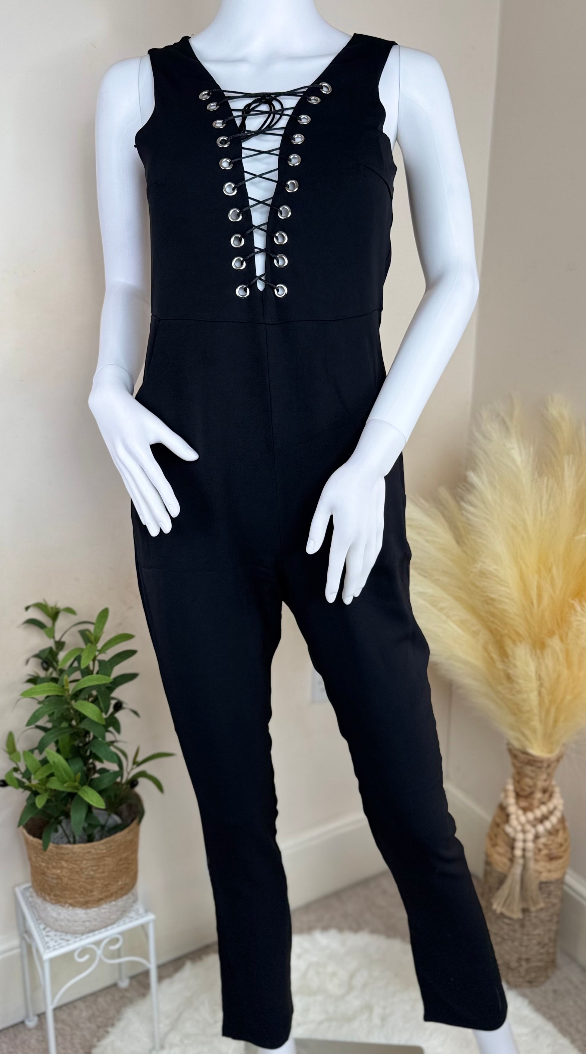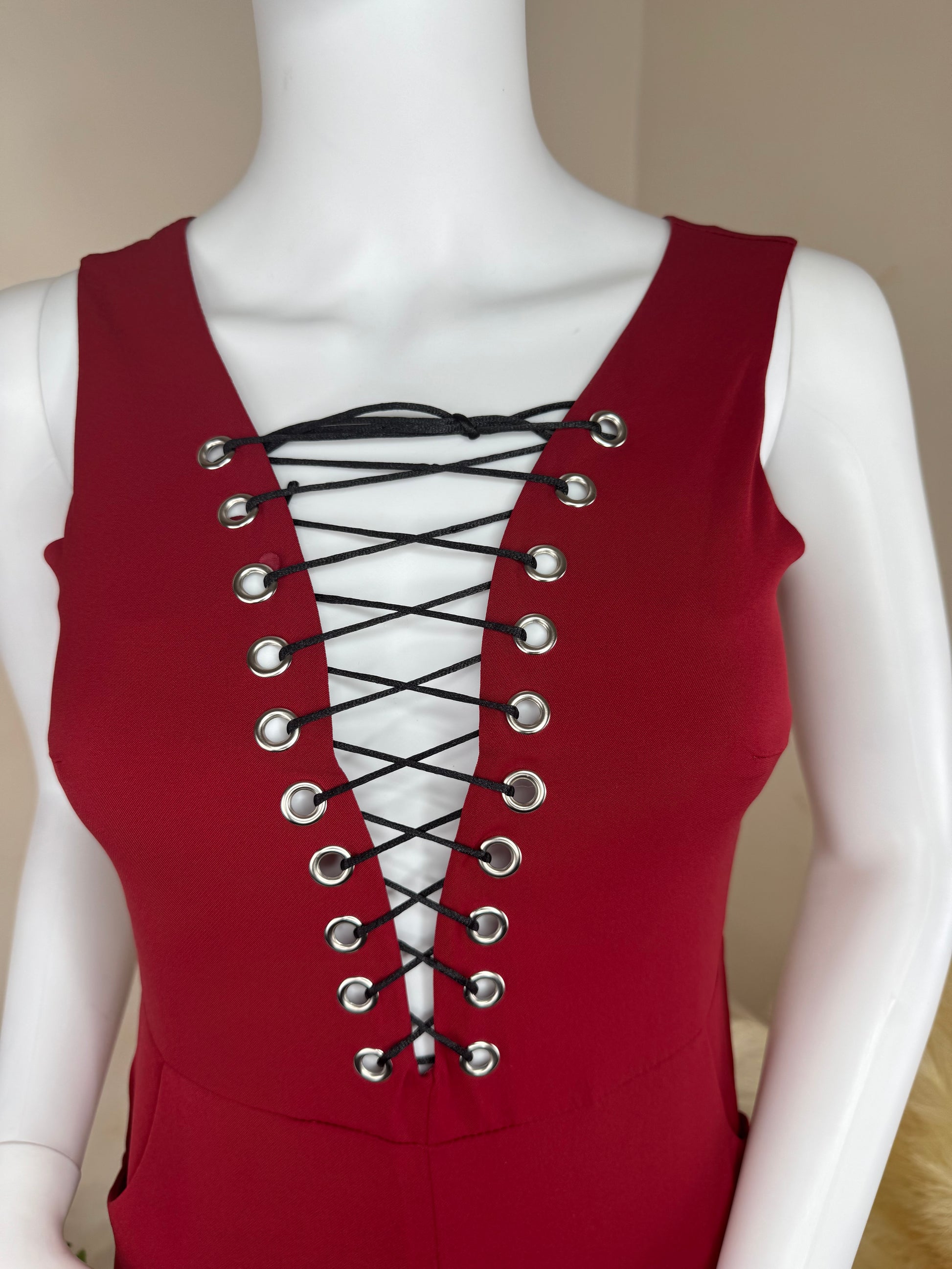 Women’s Evening Jumpsuit – Lace-Up Front, Sleeveless Party Outfit – Black or Red, UK 8 & UK 10