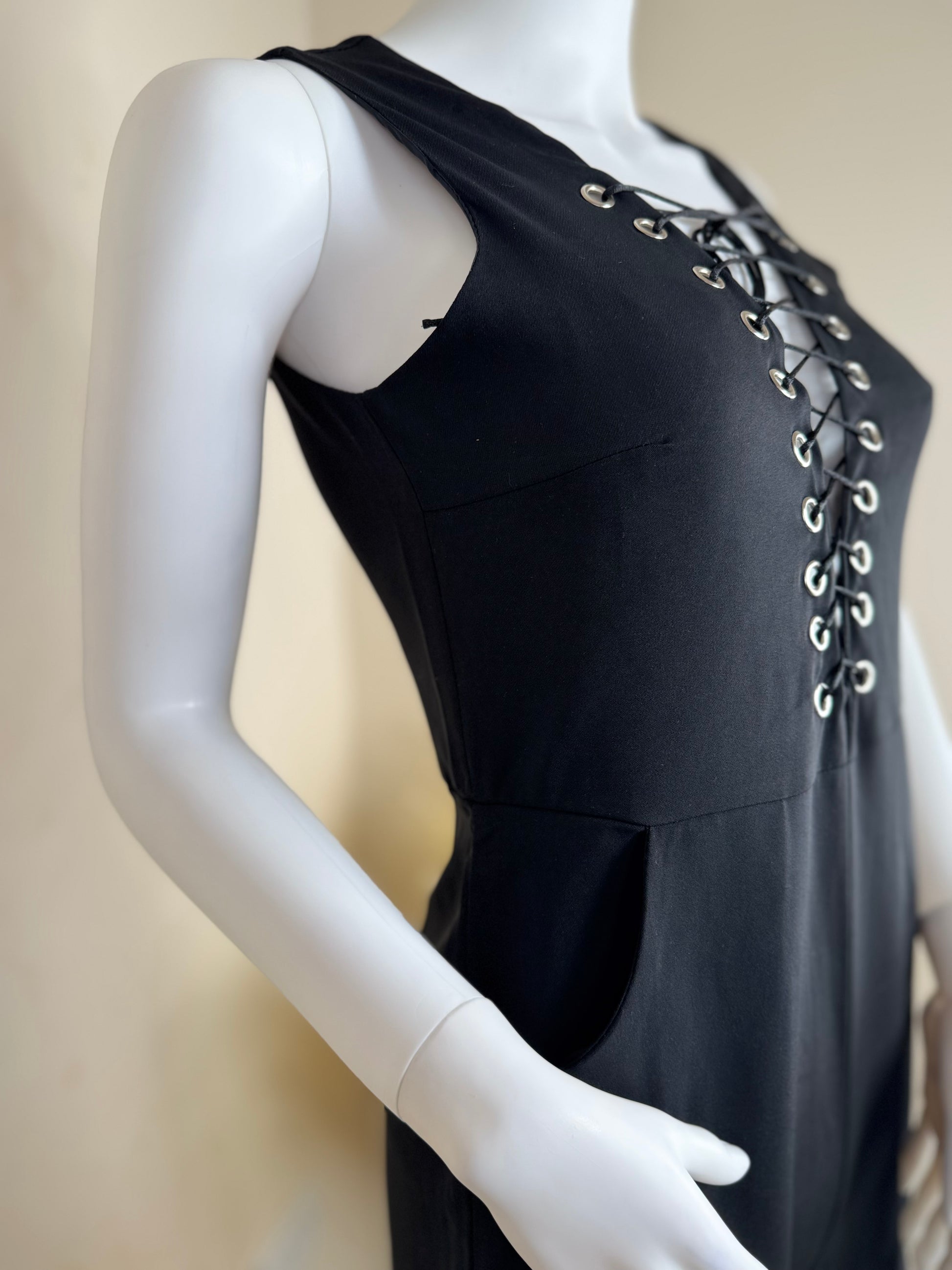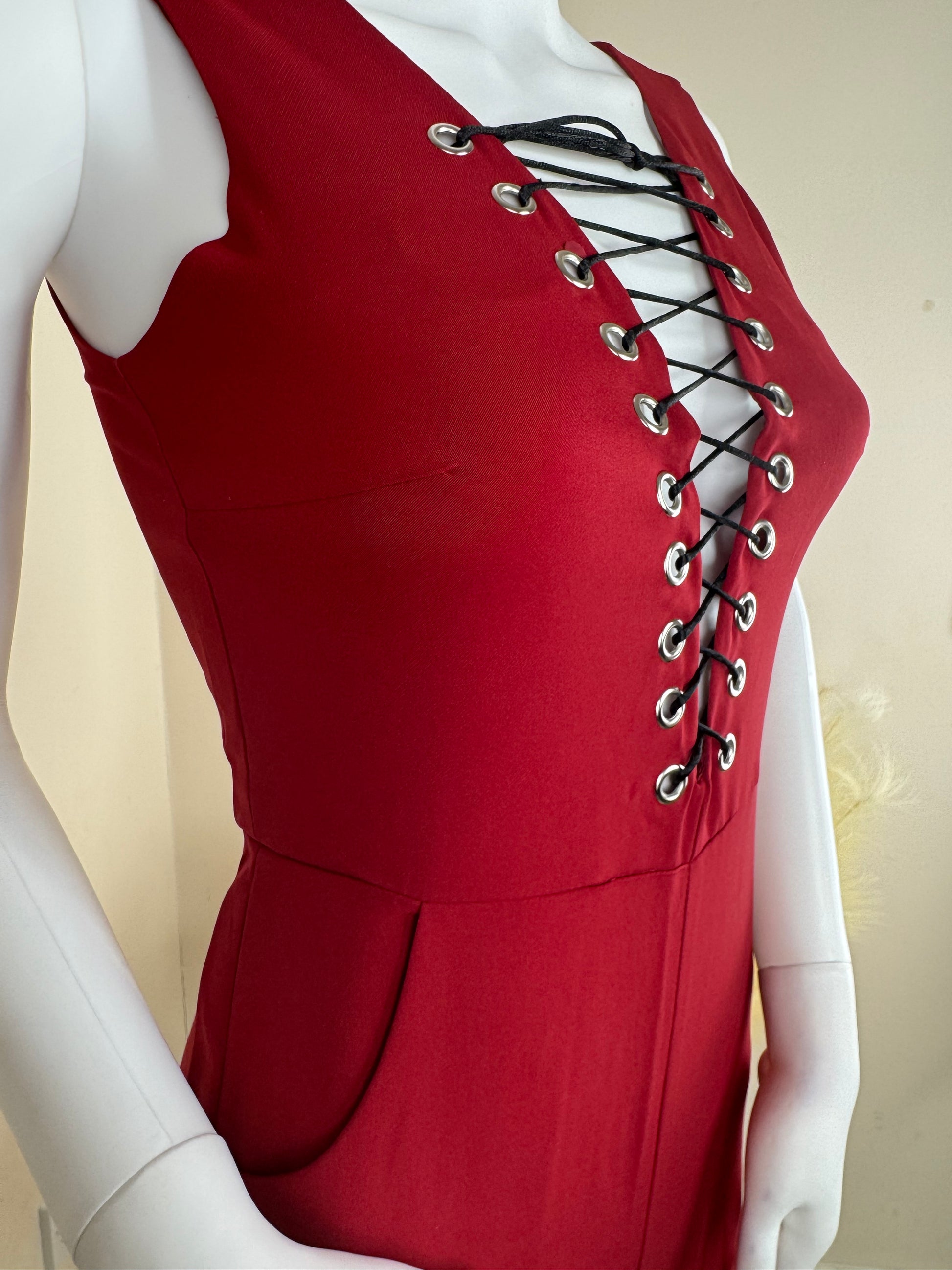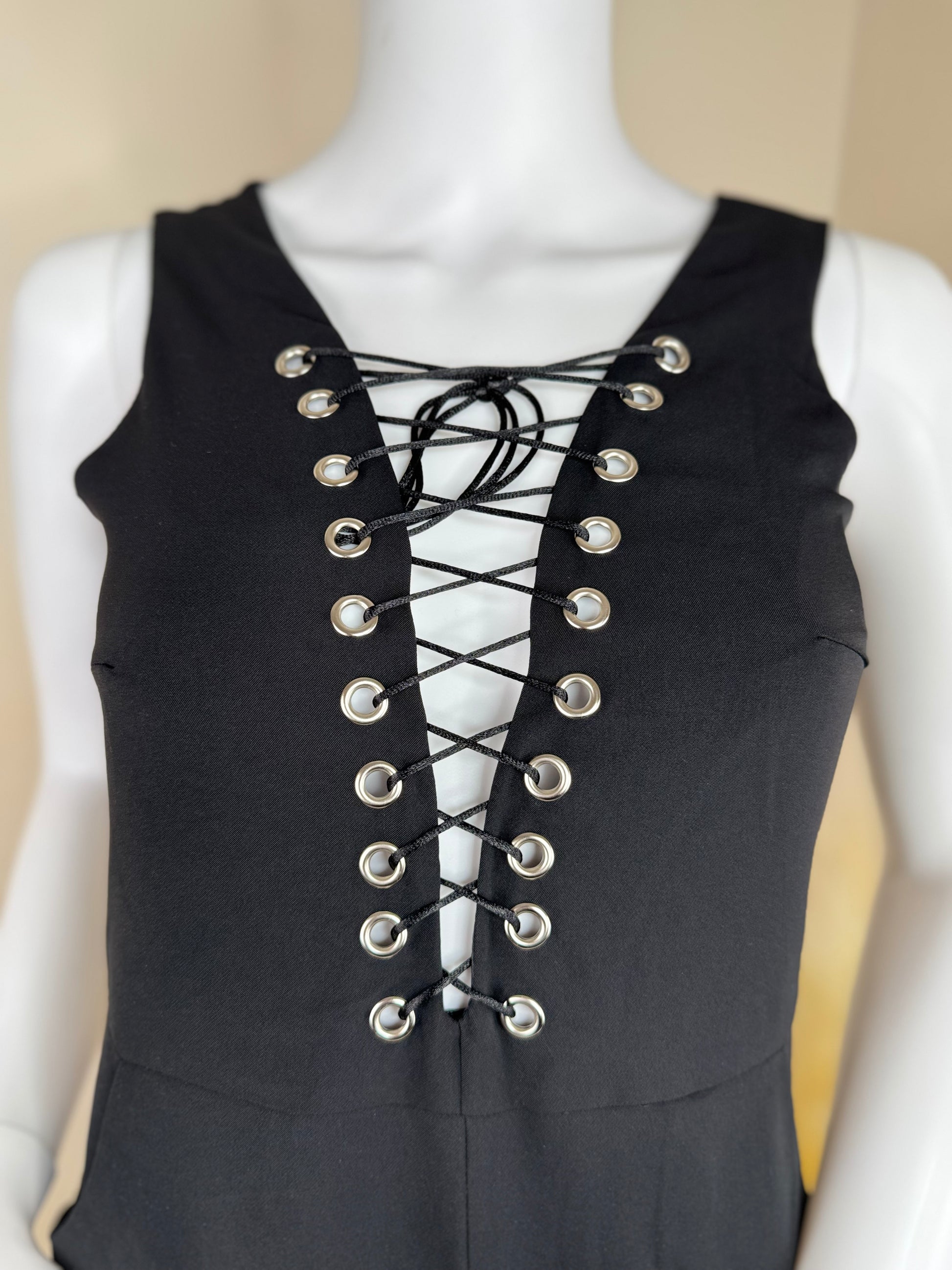- Key features: Lace-up front detail, sleeveless, fitted style, zip back