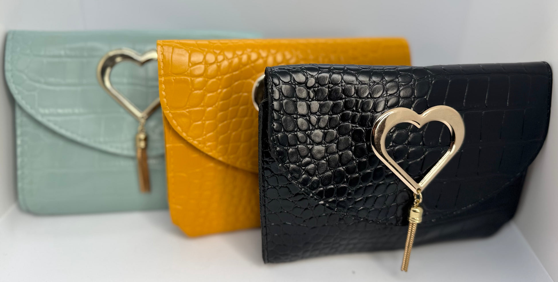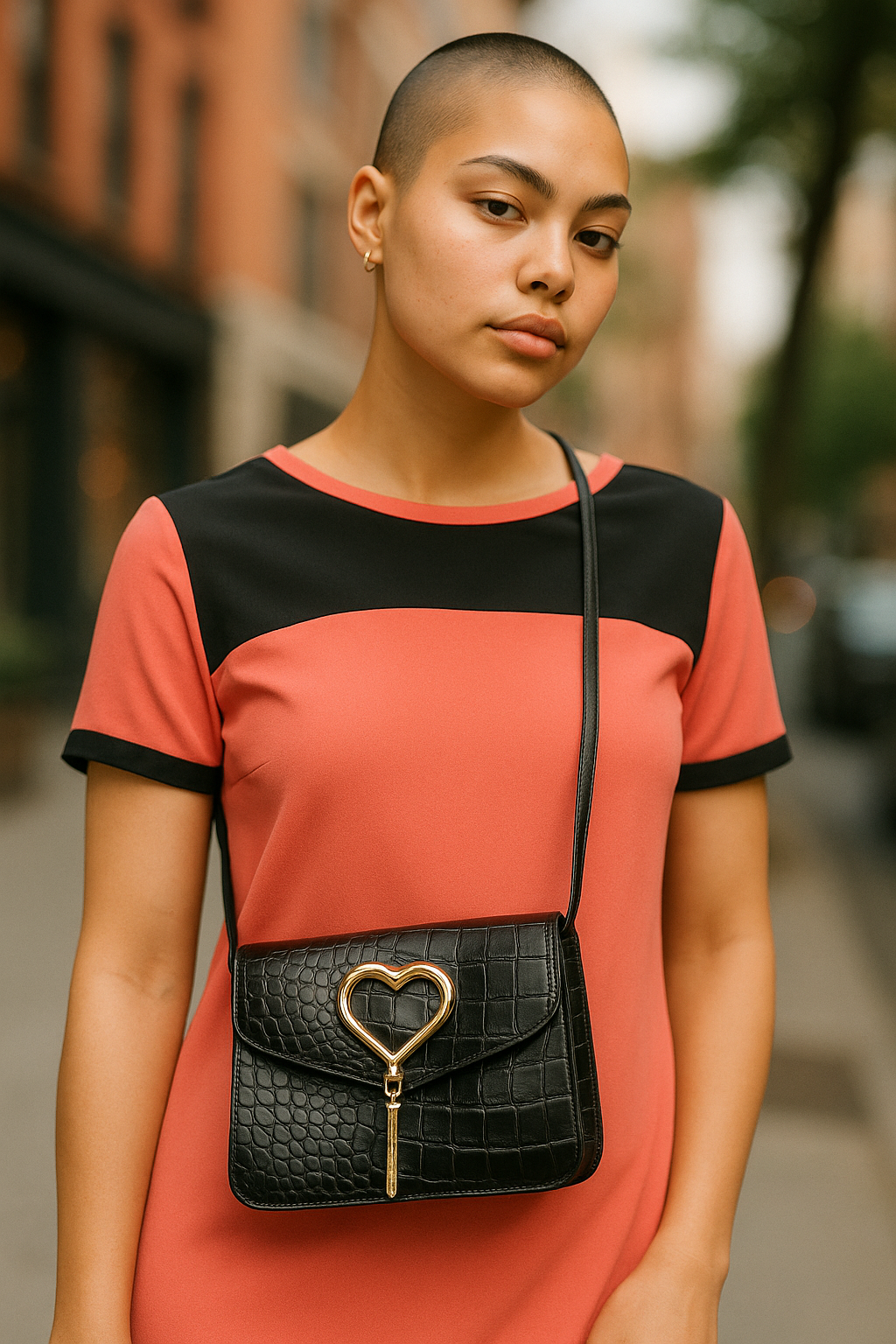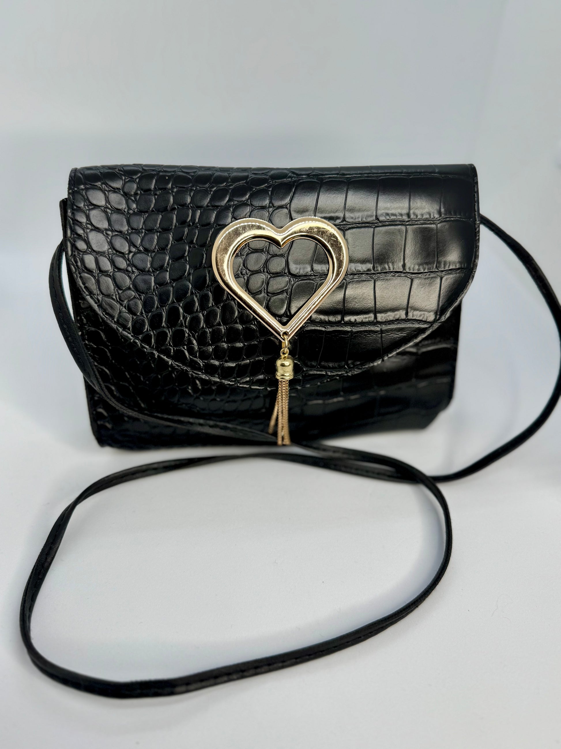 Mini crossbody bag with smooth crocodile texture and slim strap. A little bold, a little sweet – perfect for days out or evening plans.