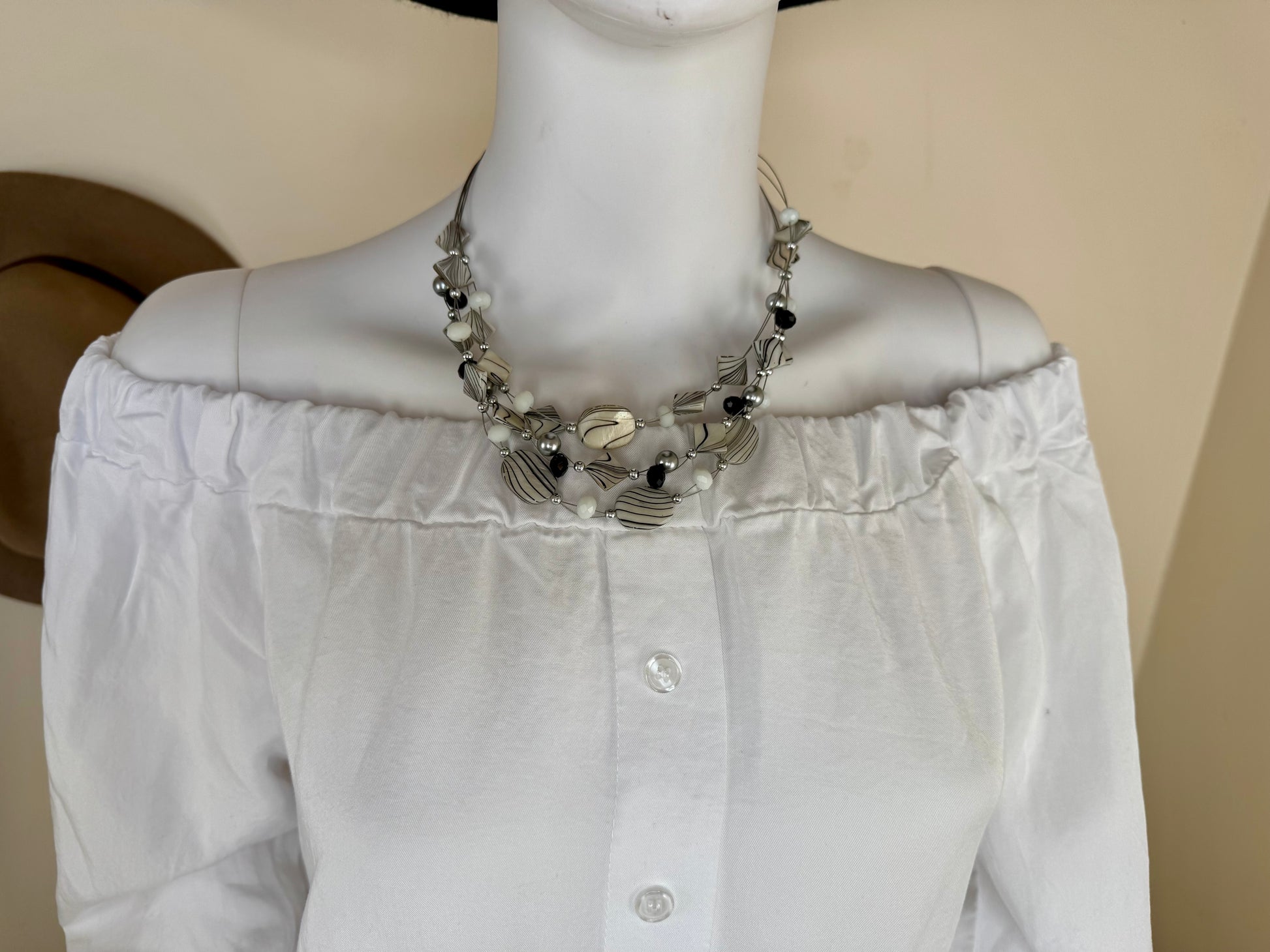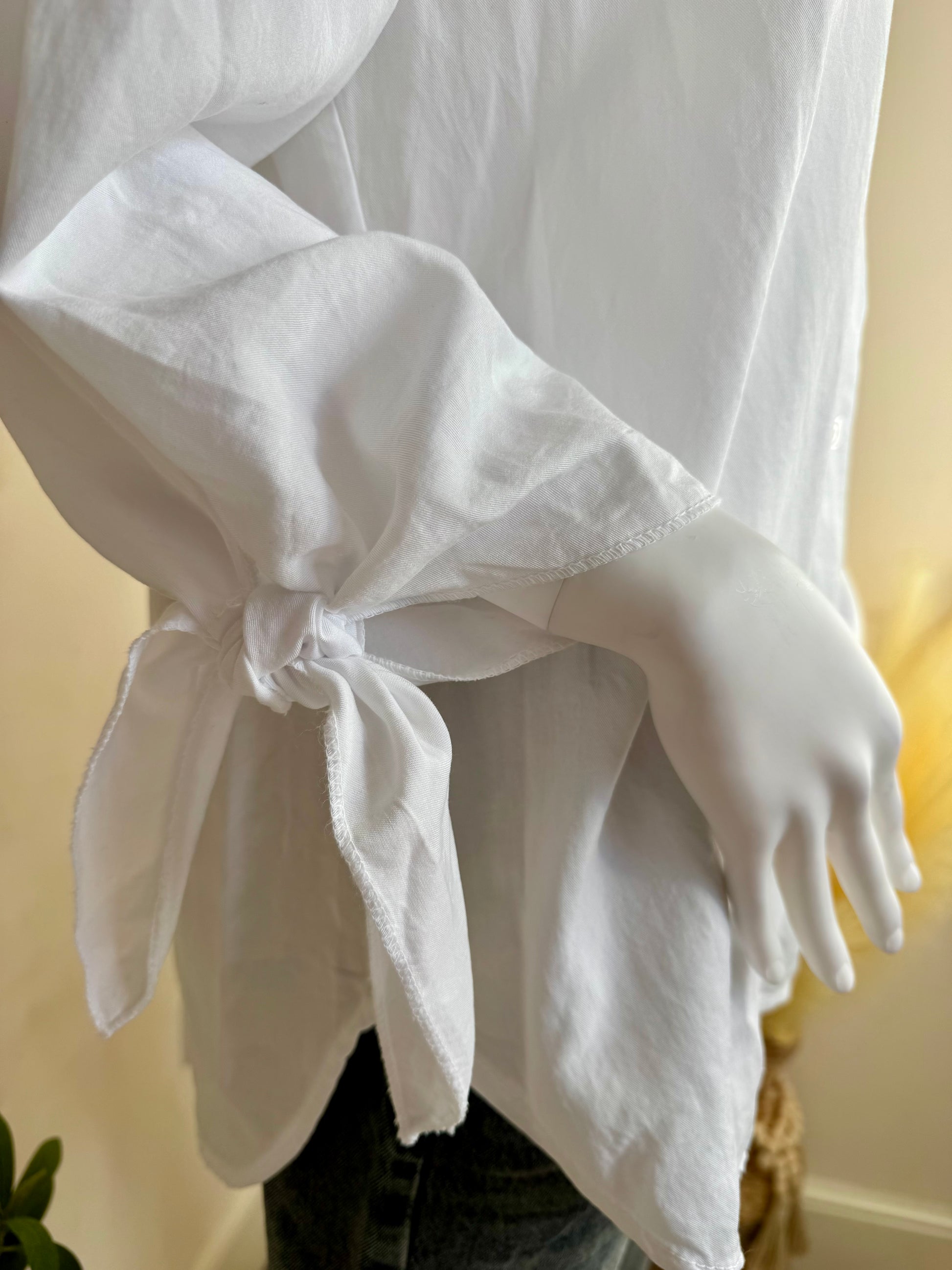 Soft and effortless, this off-shoulder blouse is designed for laid-back elegance. With button-down detail, tie sleeves, and a flattering relaxed fit, it’s perfect for layering or styling solo. Pair with jeans for casual days or dress it up for evenings on the island.