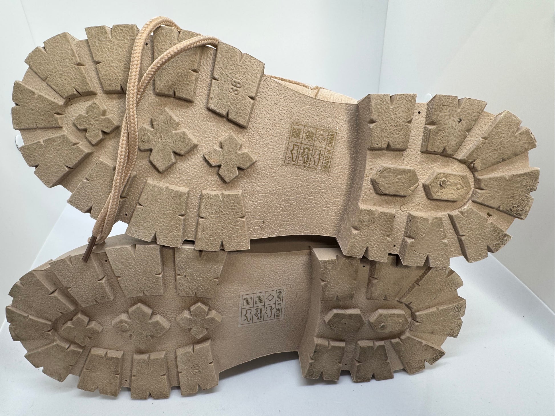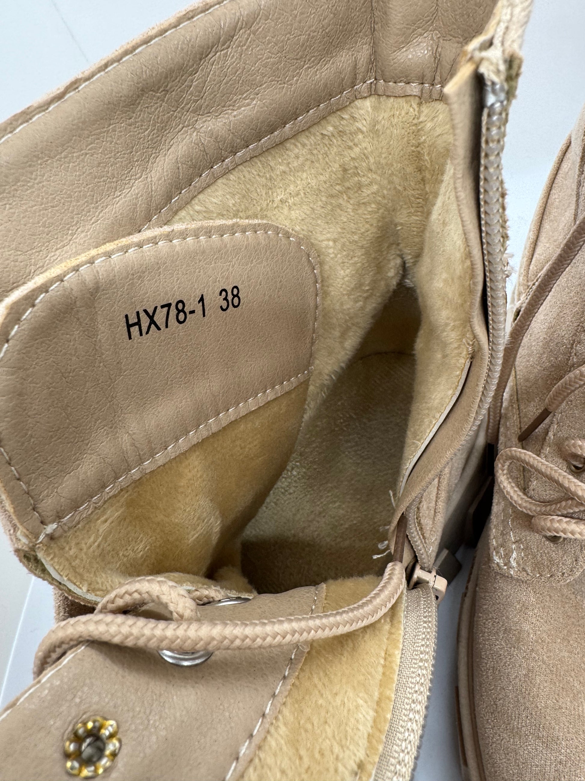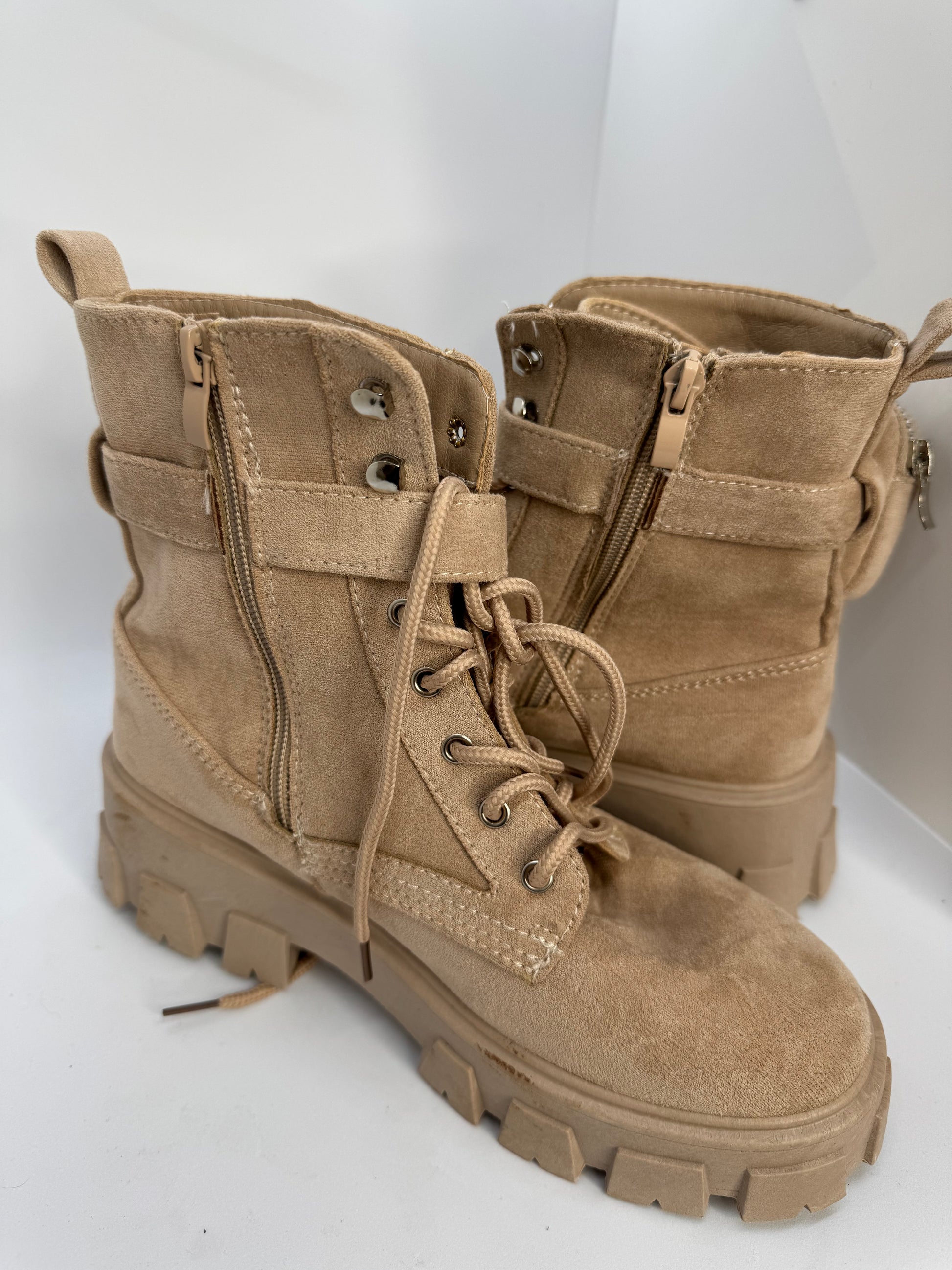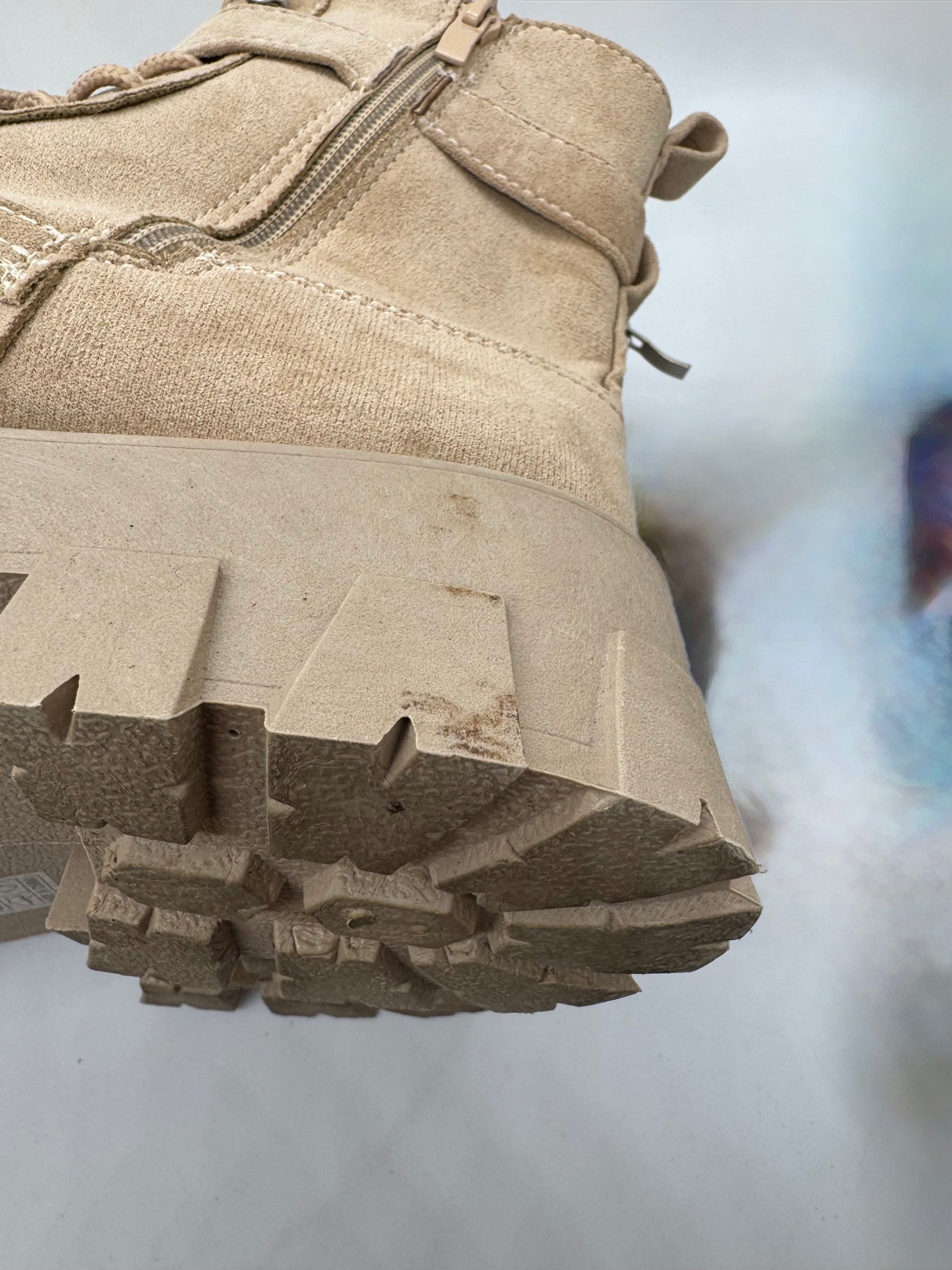 Women’s Beige Combat Boots with Pocket – Size UK 5 Faux Fur Lined Chunky Sole