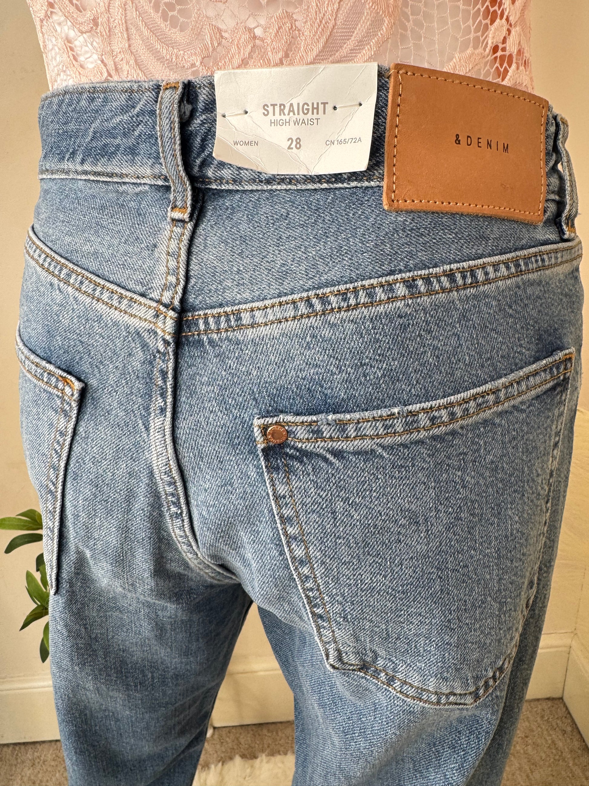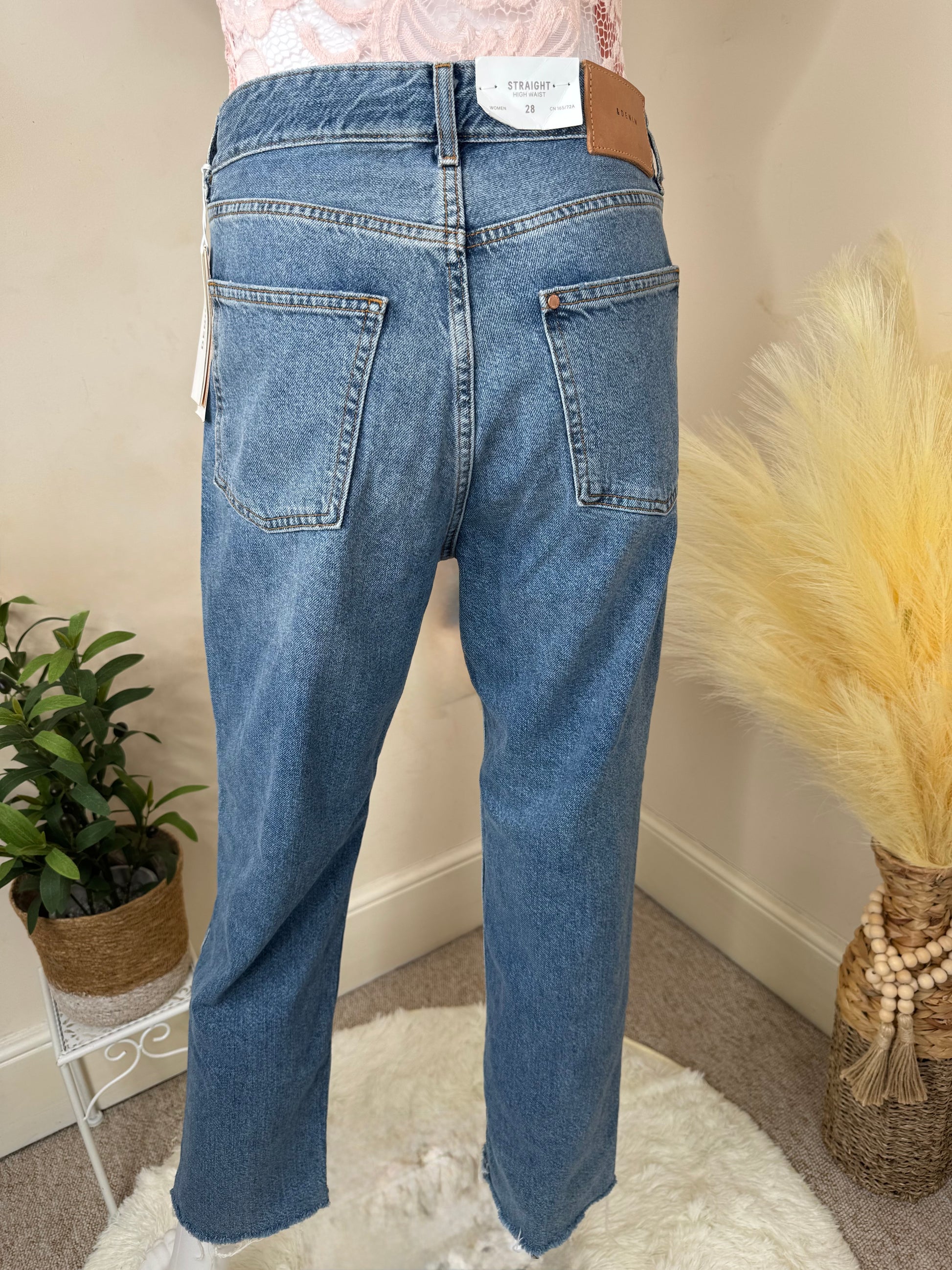 Women’s Blue Distressed Straight Leg Jeans High Waist – UK Size 10 (28)