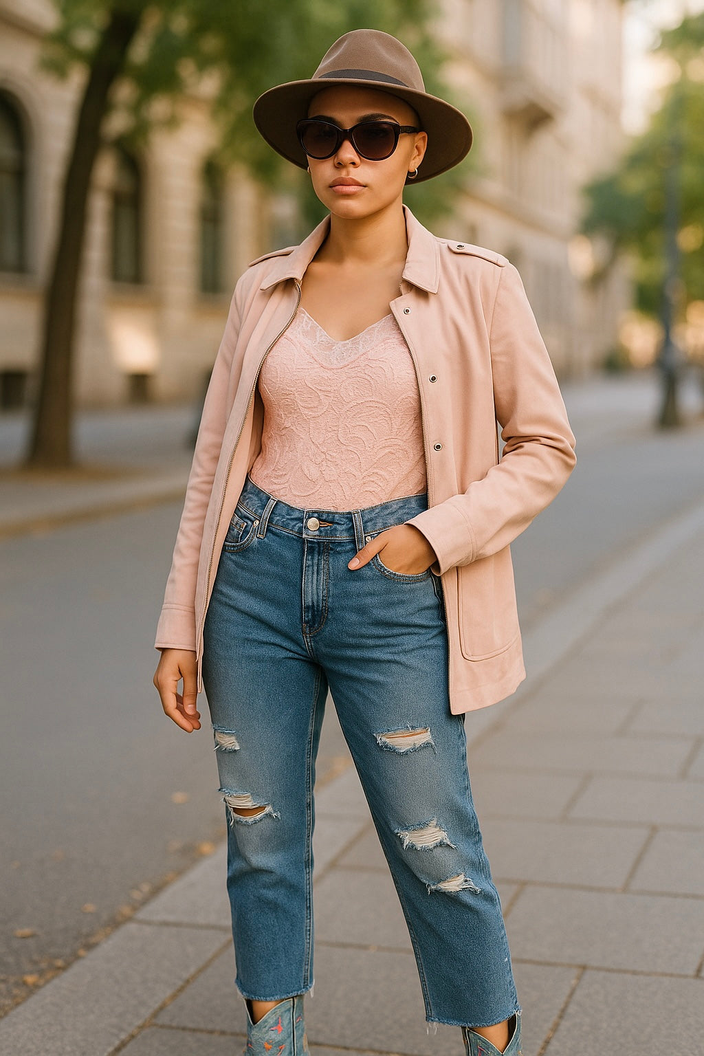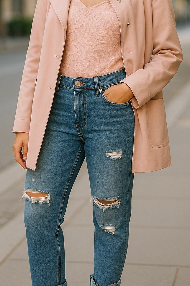 A timeless denim essential with modern distressed touches – versatile, flattering, and ready for new stories.