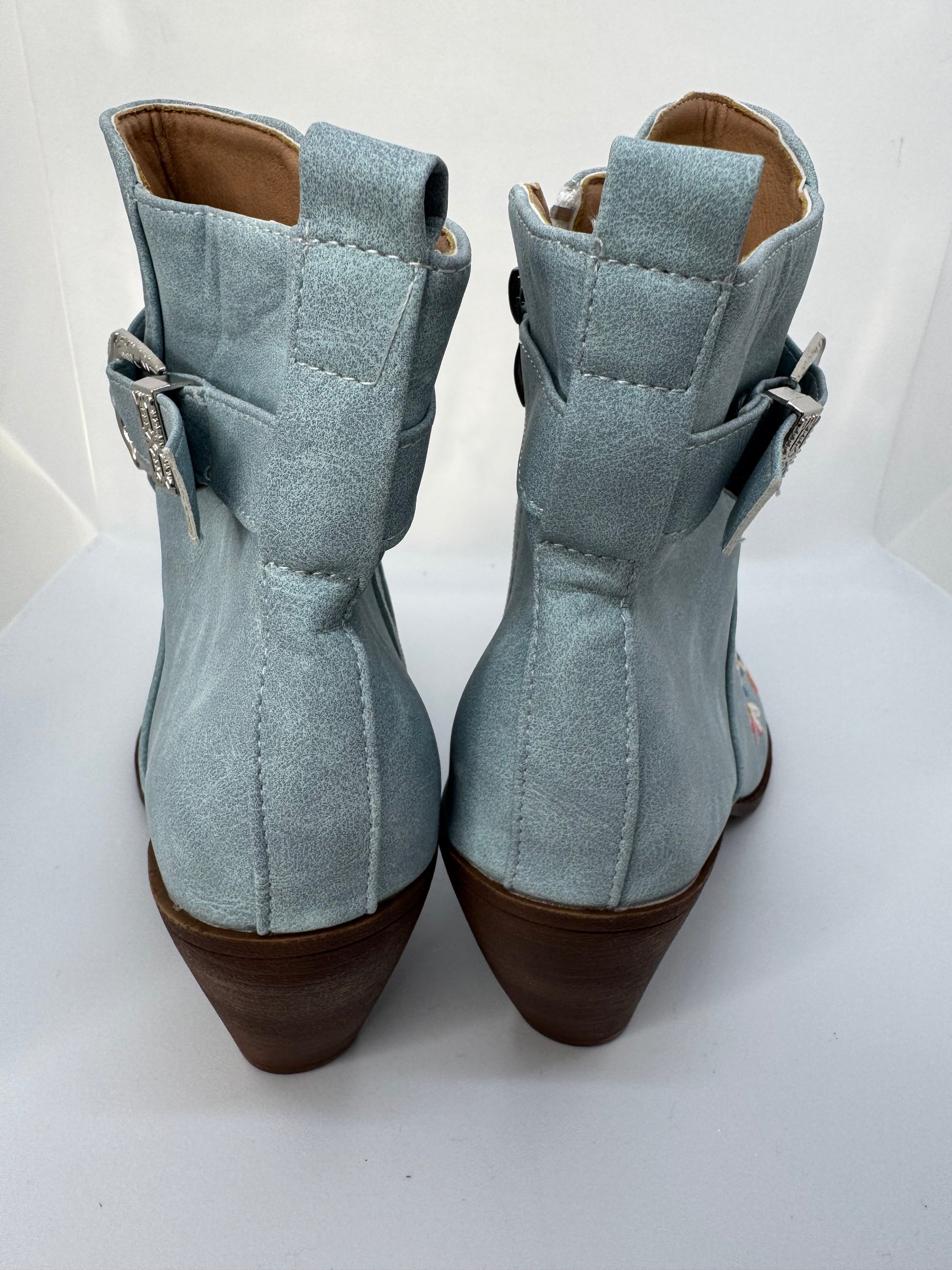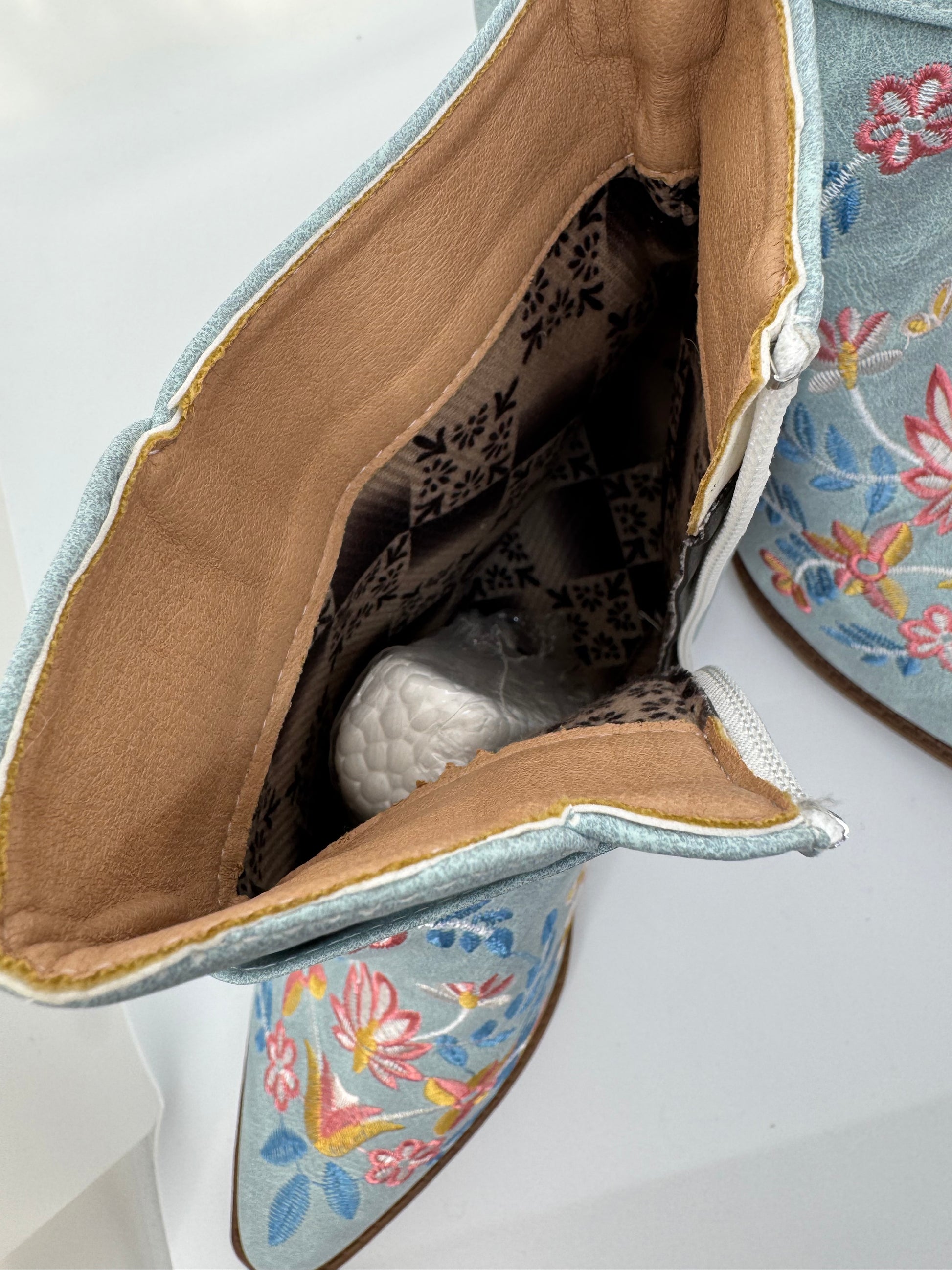Women’s Western Boots Blue Embroidered – UK 7 / Block Heel, Floral Cowboy Style