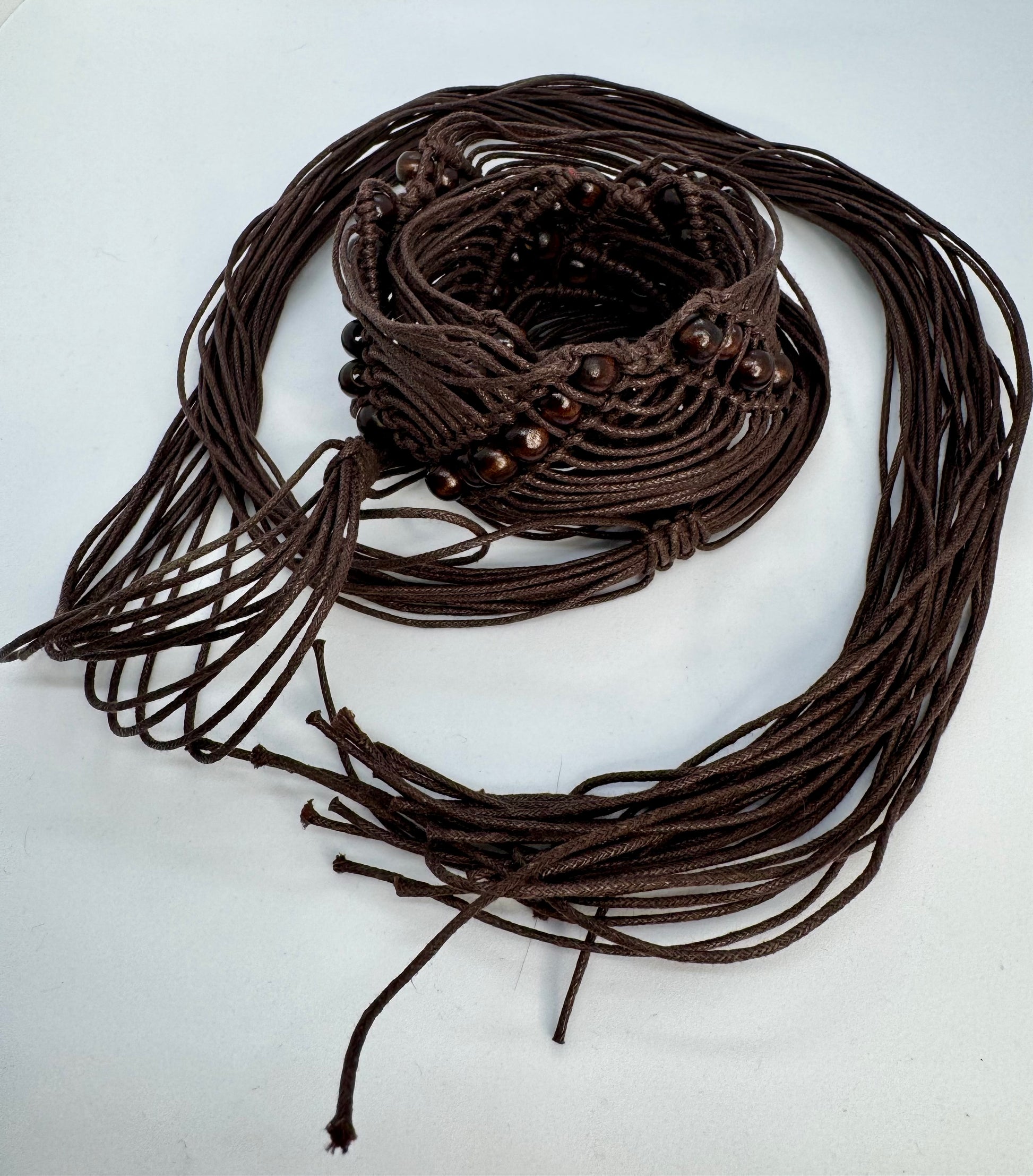 Women’s Brown Boho Macramé Waist Belt with Wooden Beads – Adjustable One Size