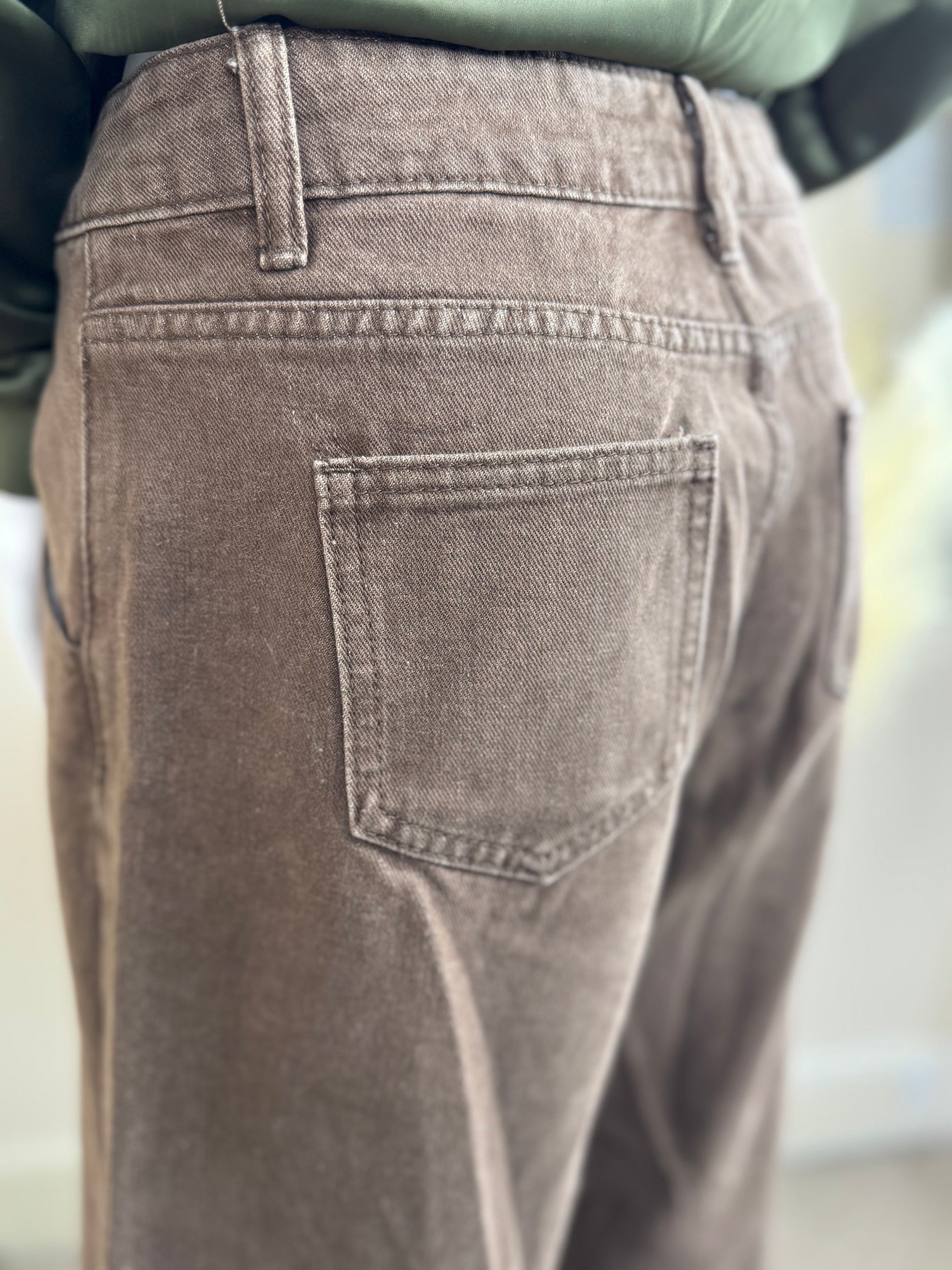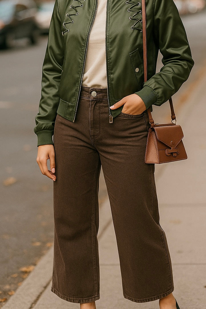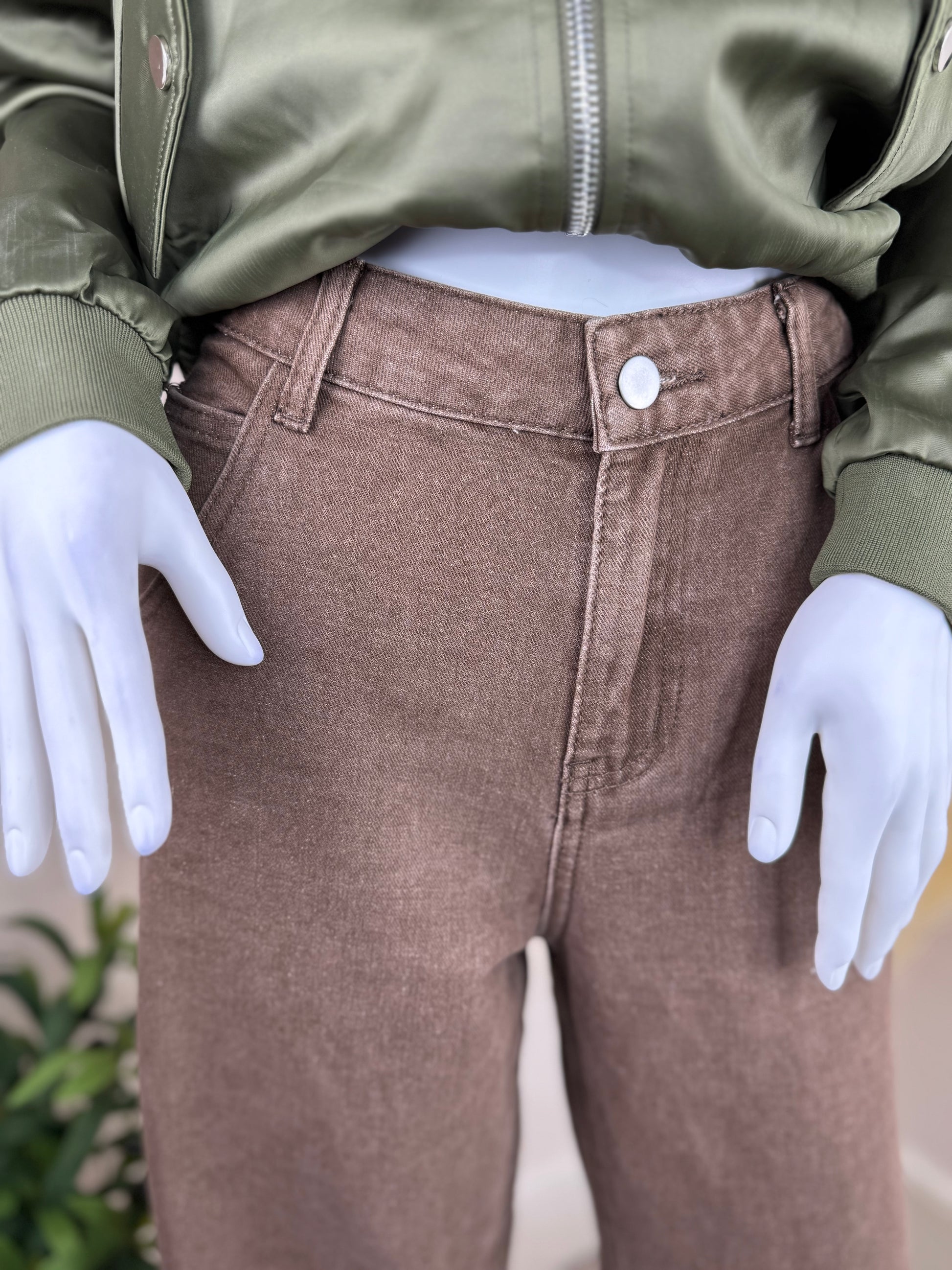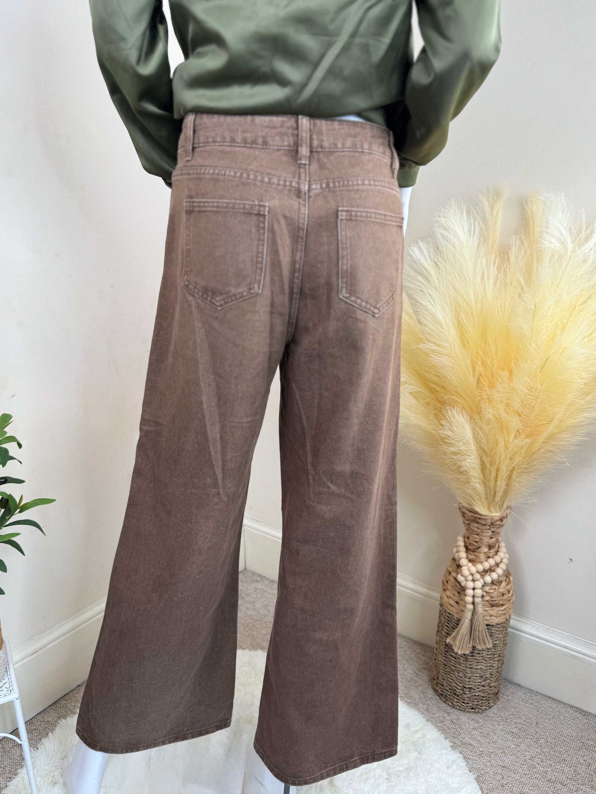 Step into autumn style with these chic brown wide leg jeans by Dazy.
