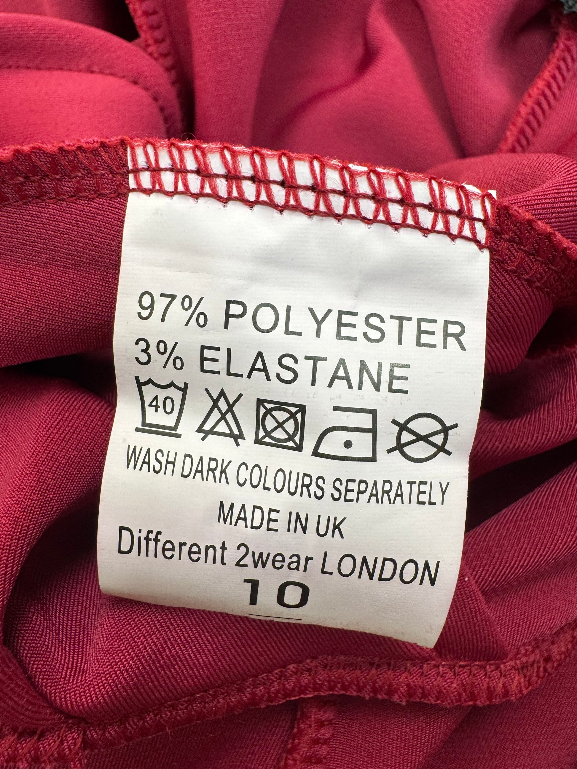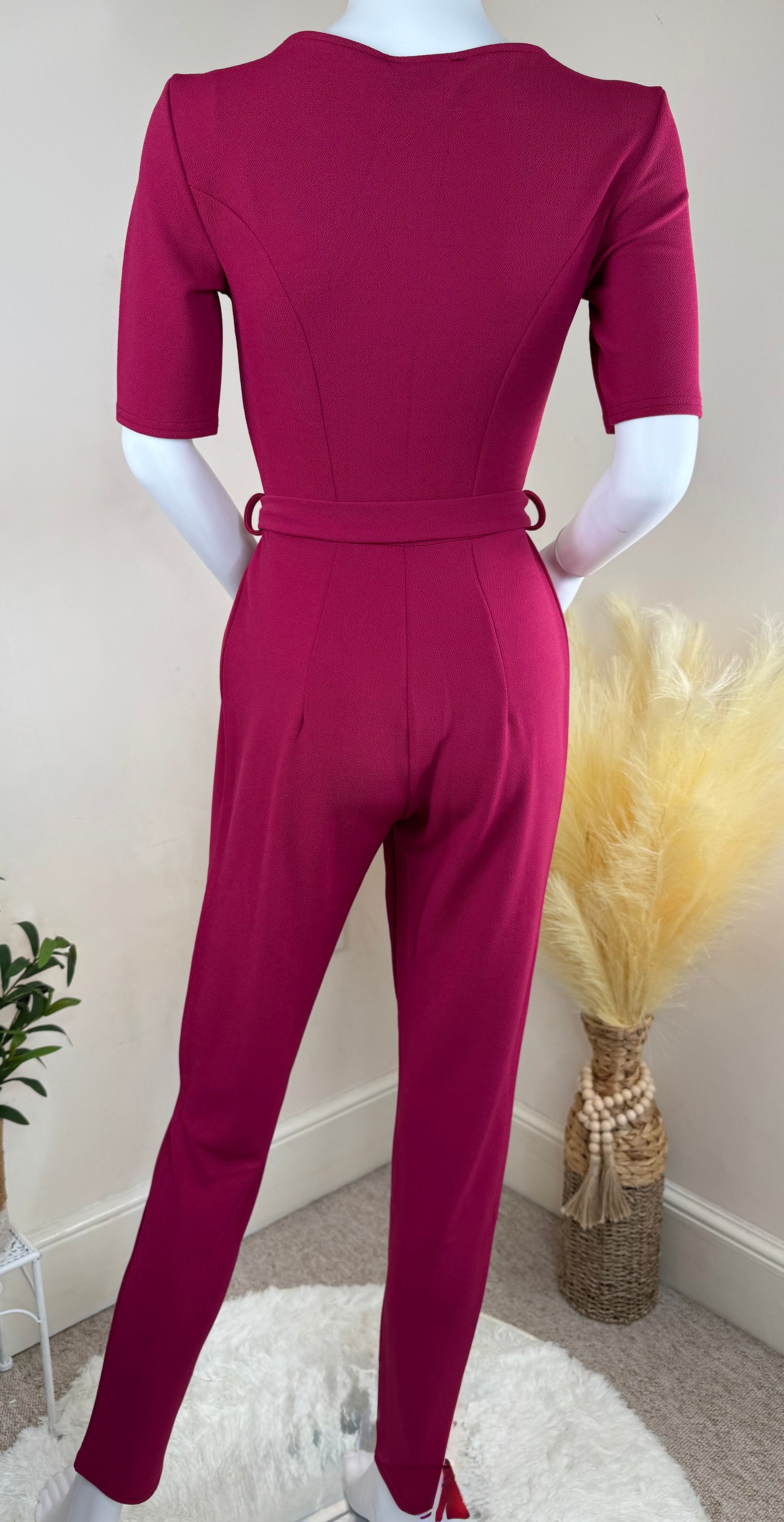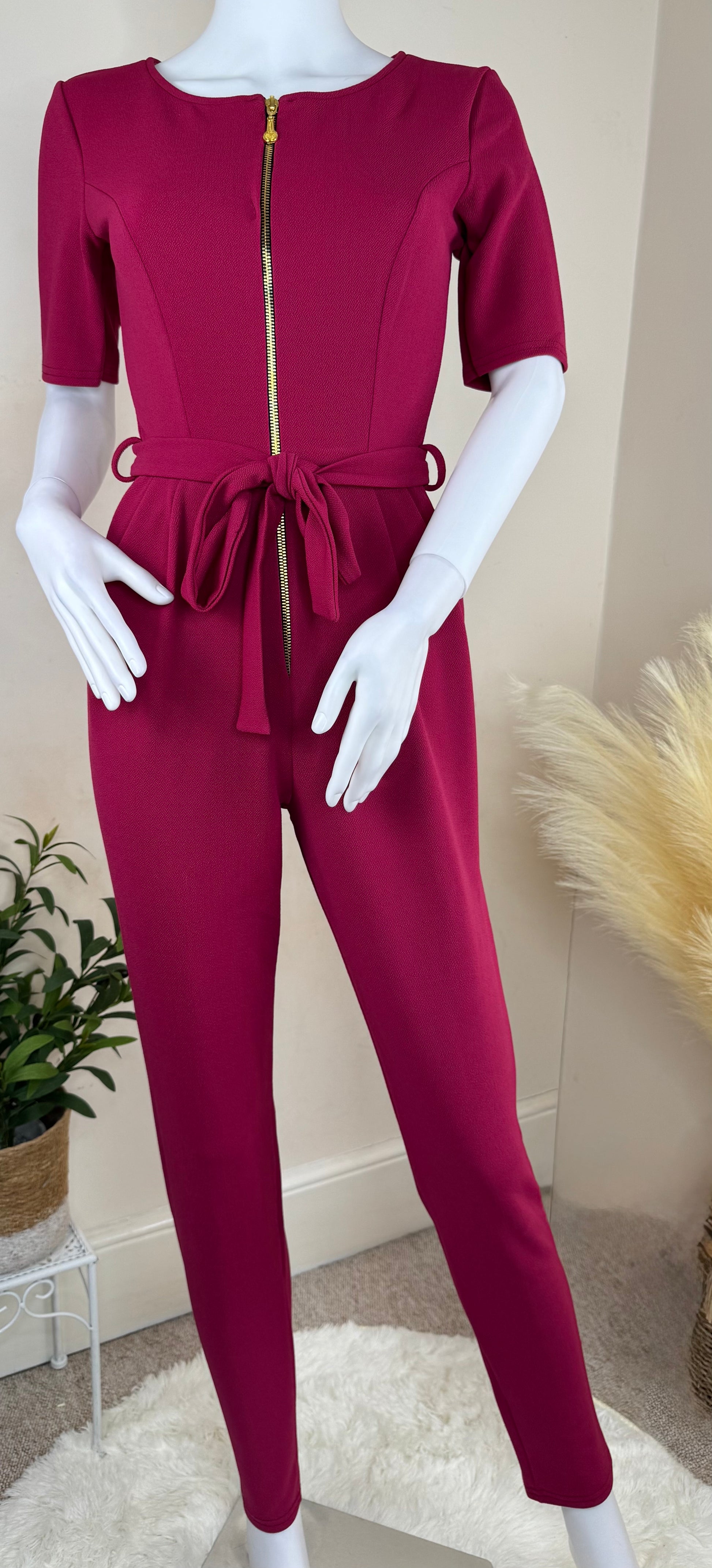 Step into sleek, effortless style with this burgundy jumpsuit by Different 2Wear London. Featuring short sleeves, a flattering tie-waist belt, and a zip front, this piece is perfect for both day-to-night wear. Made in the UK with a comfortable stretch blend.