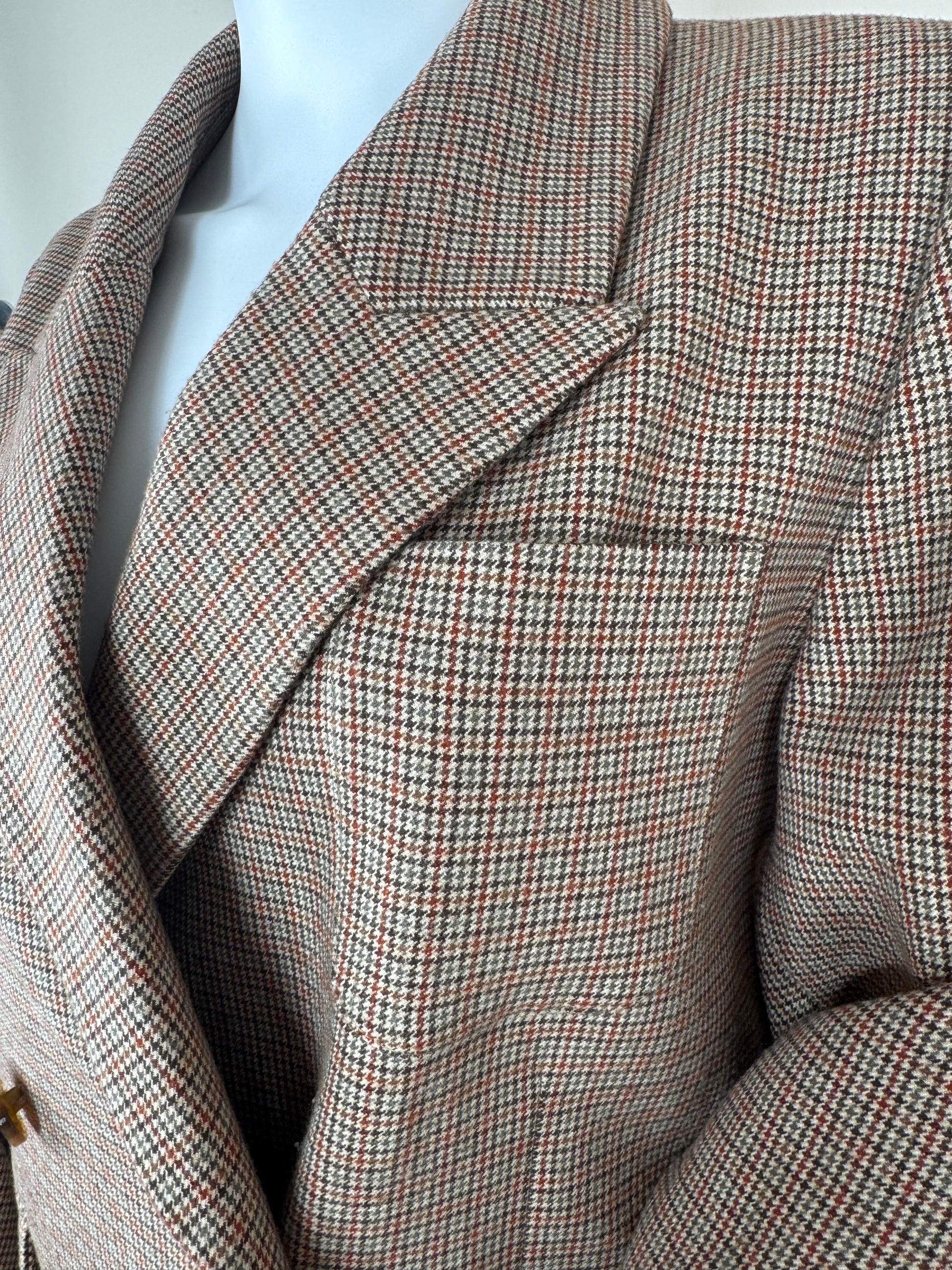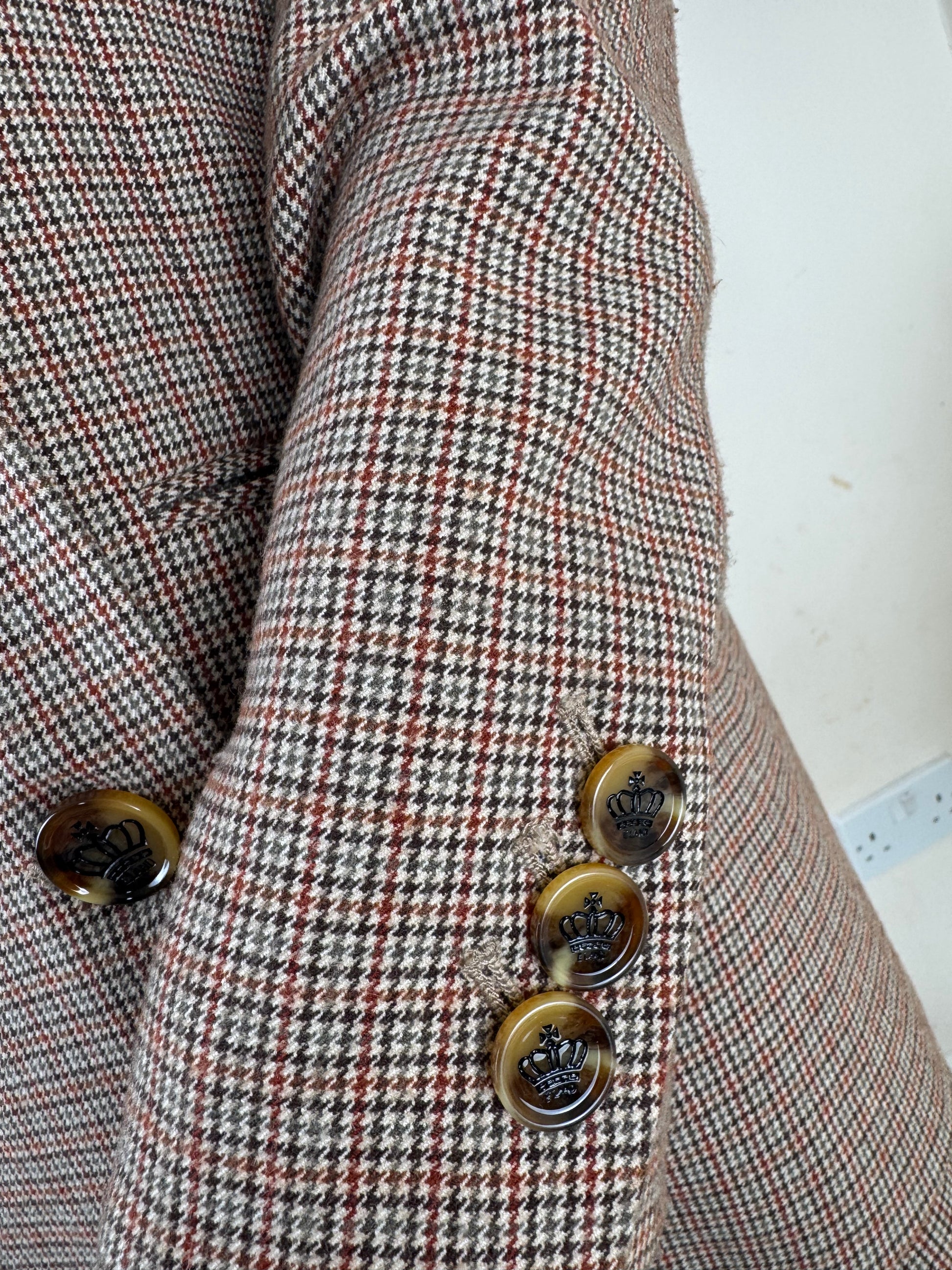 - Pattern: Checked houndstooth, warm brown/rust mix