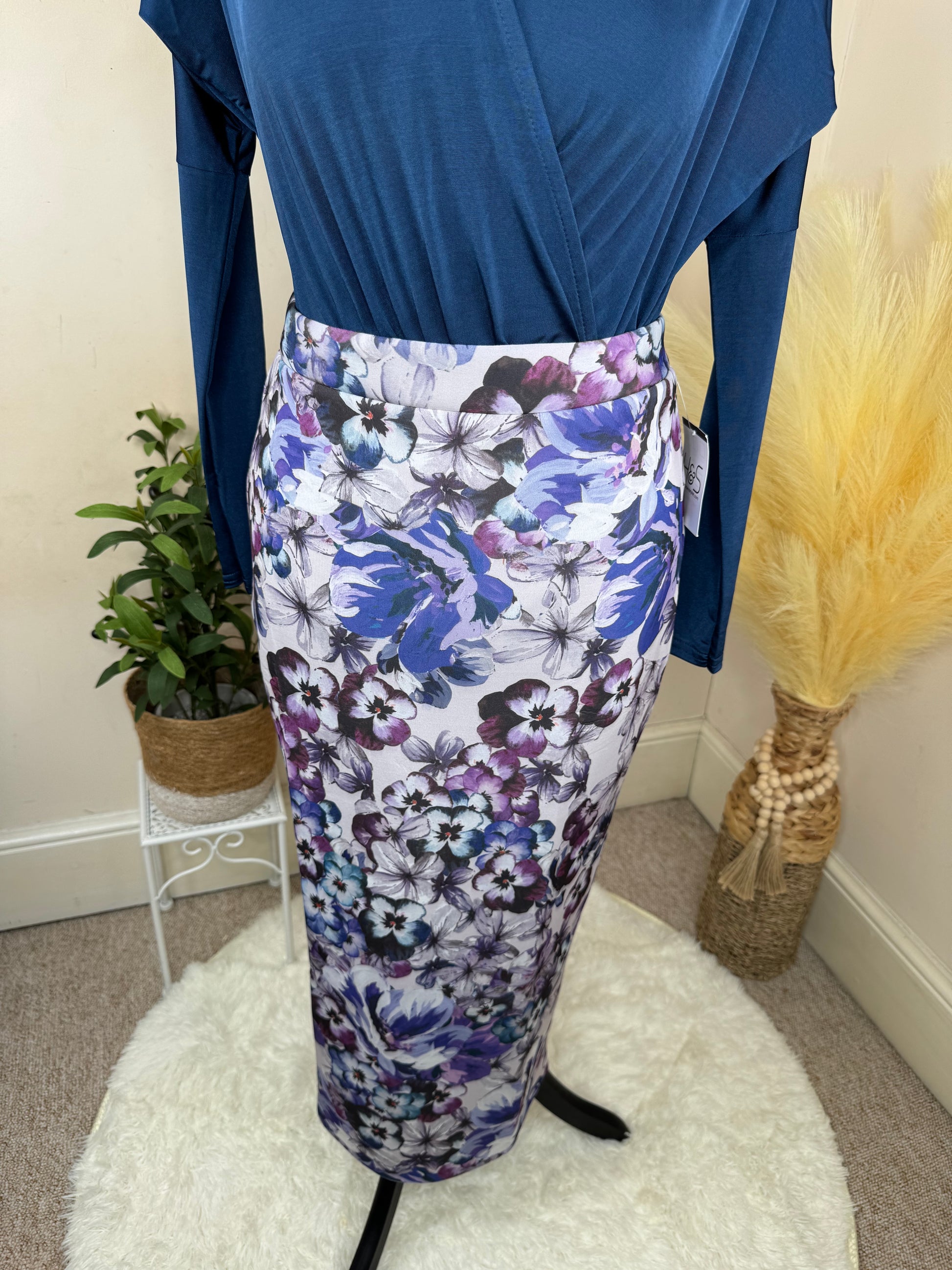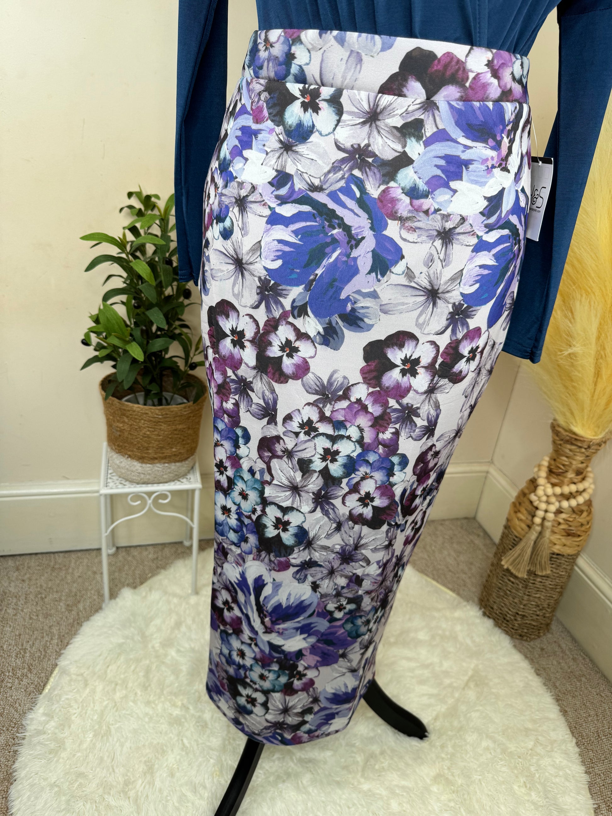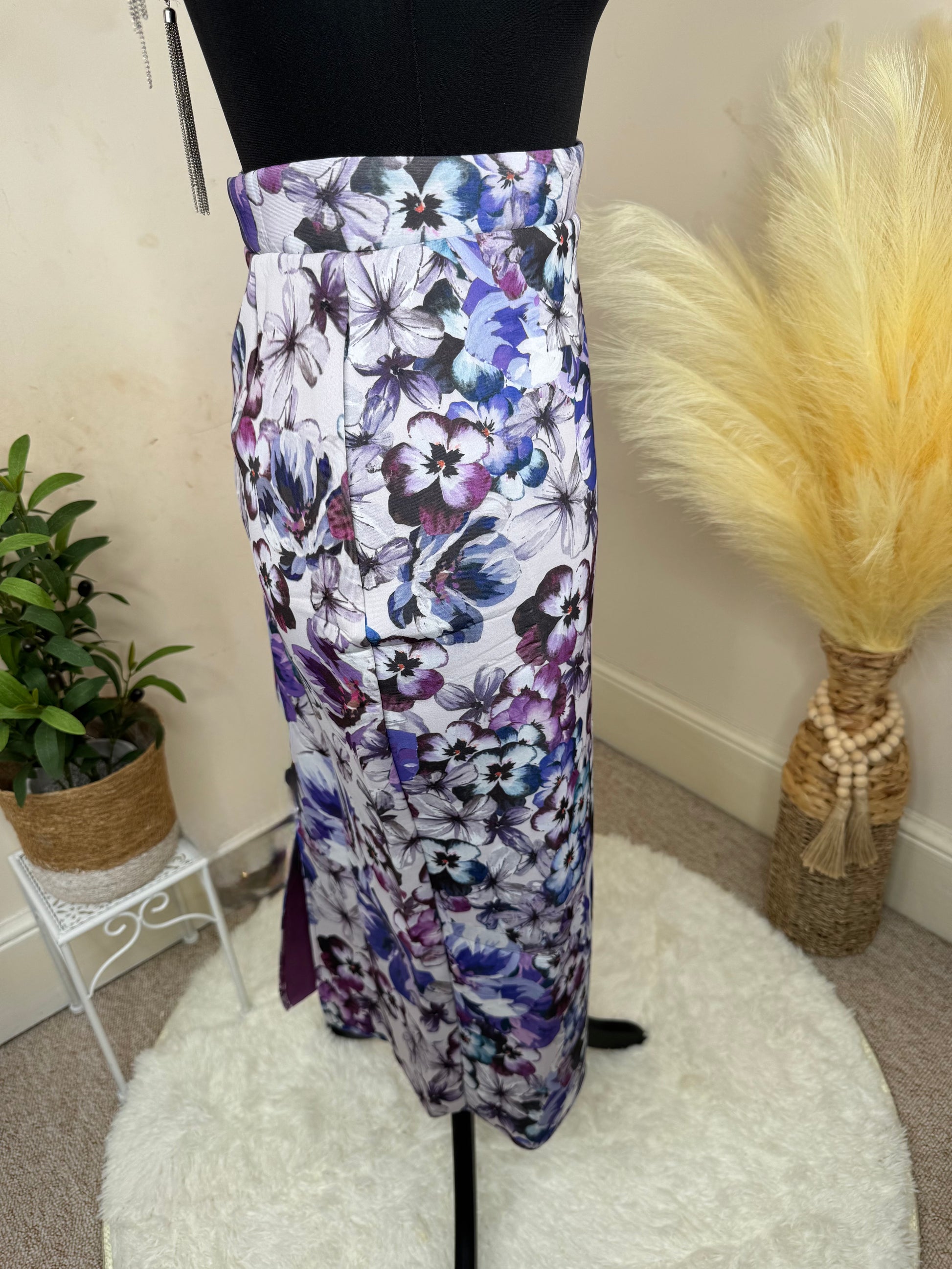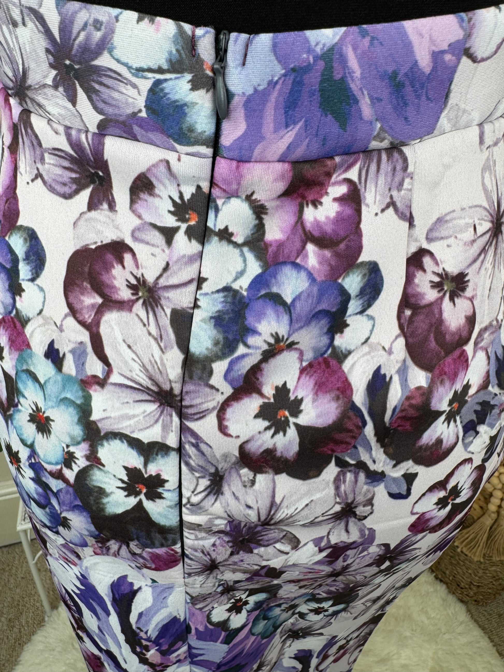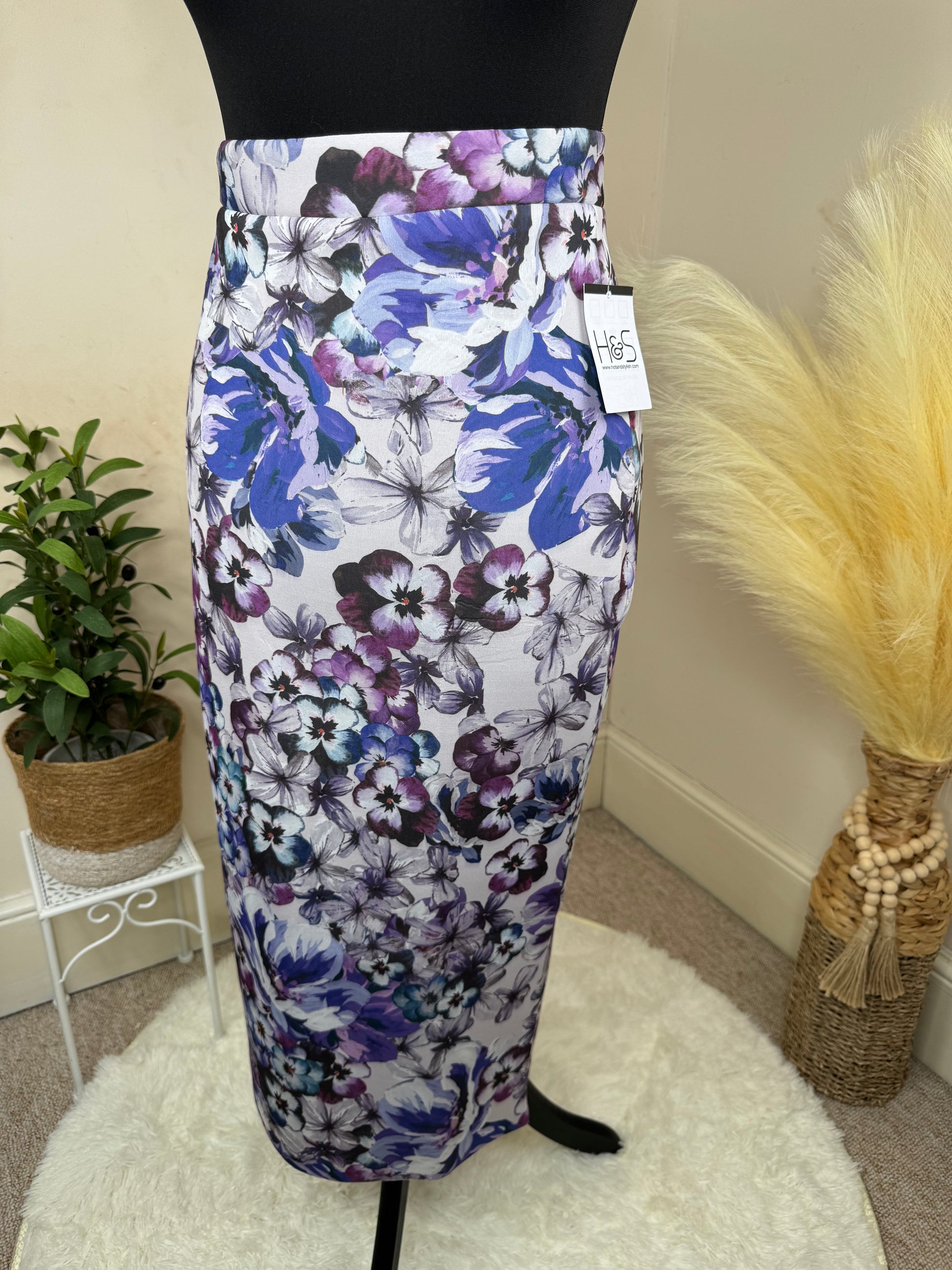 Women’s Floral Pencil Skirt – Midi Purple Print – Sizes UK 6 & 10