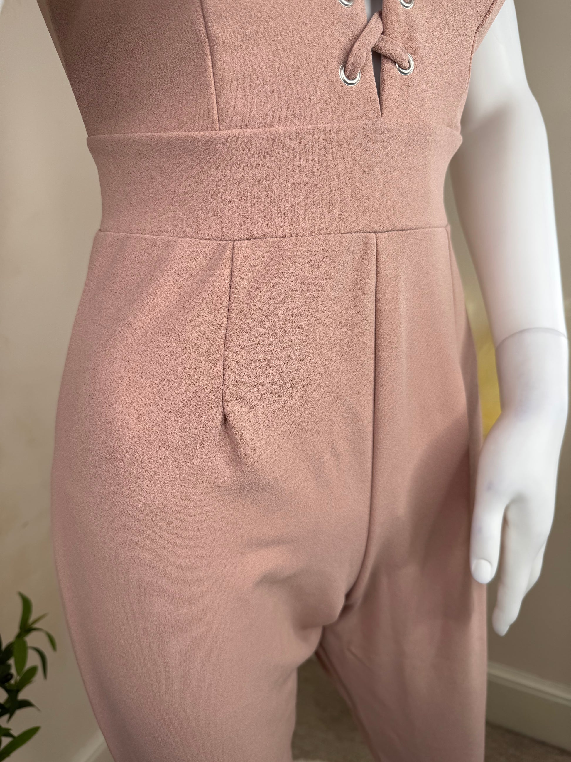 Women’s Halter Jumpsuit – Lace Front Evening Playsuit Pink– UK Size 10