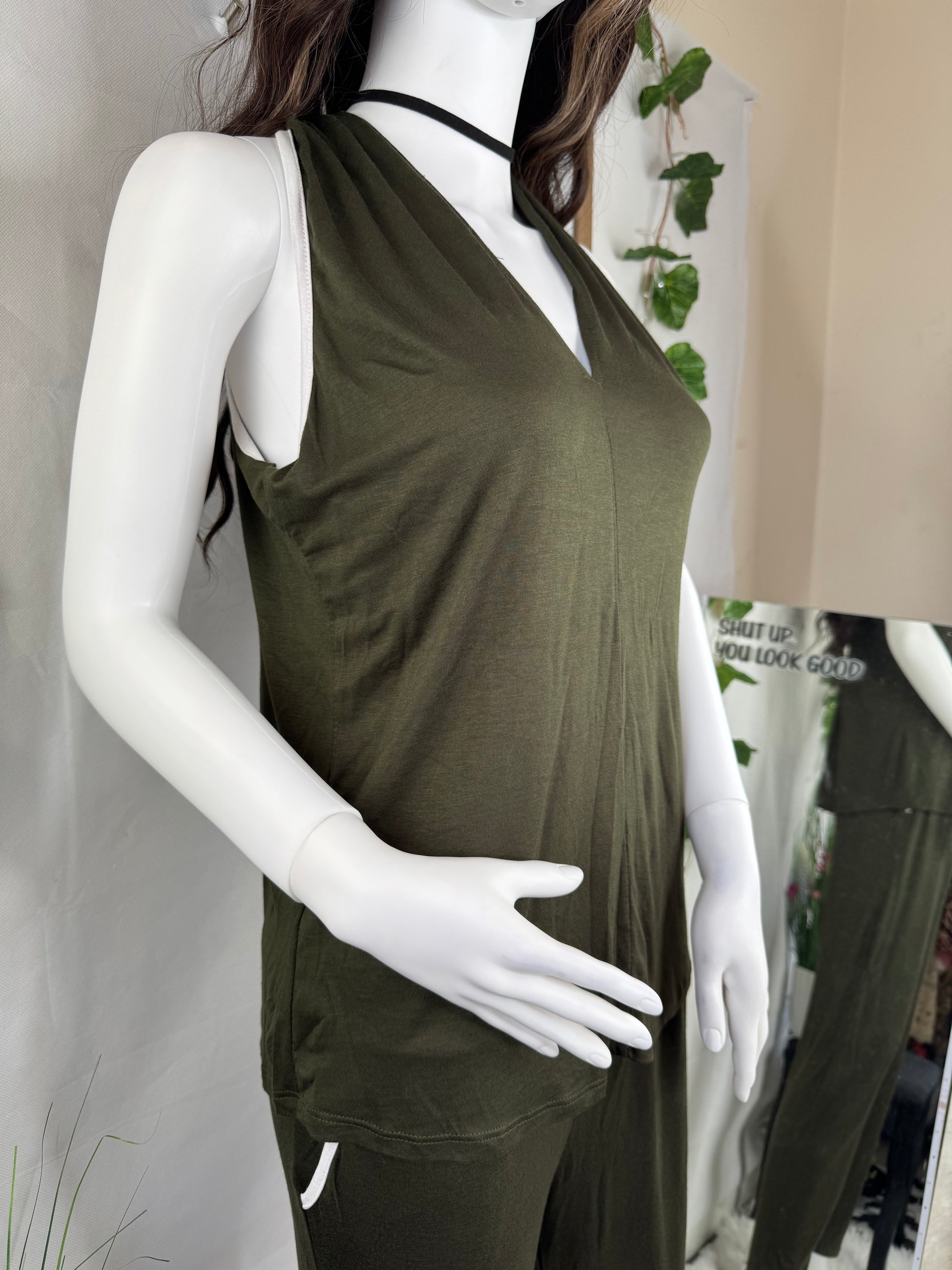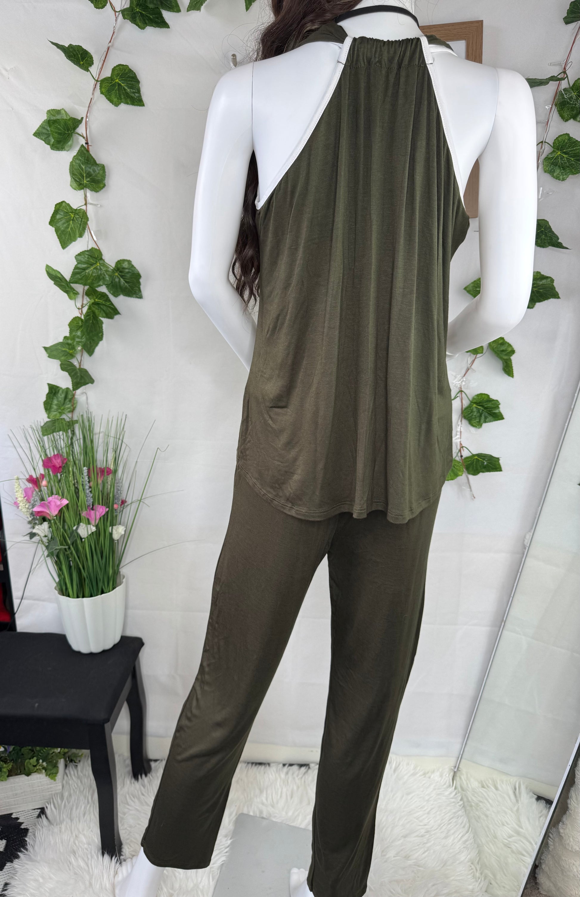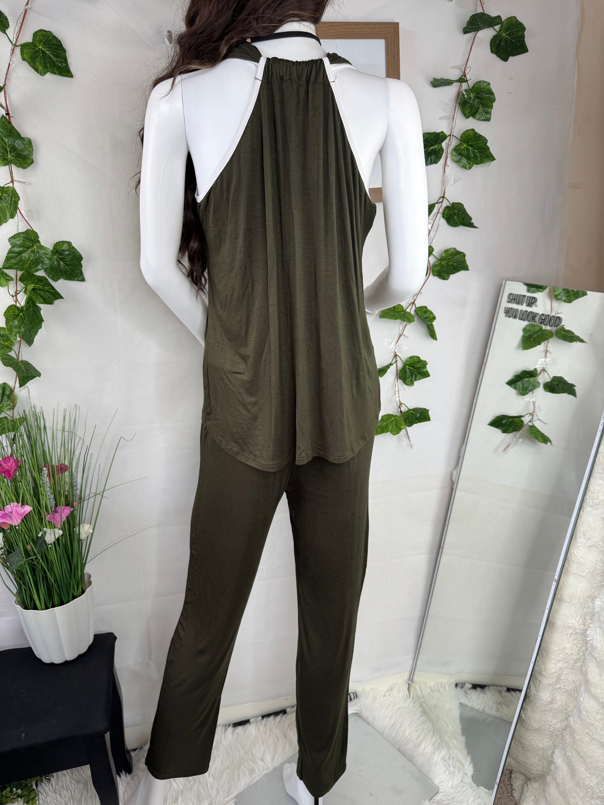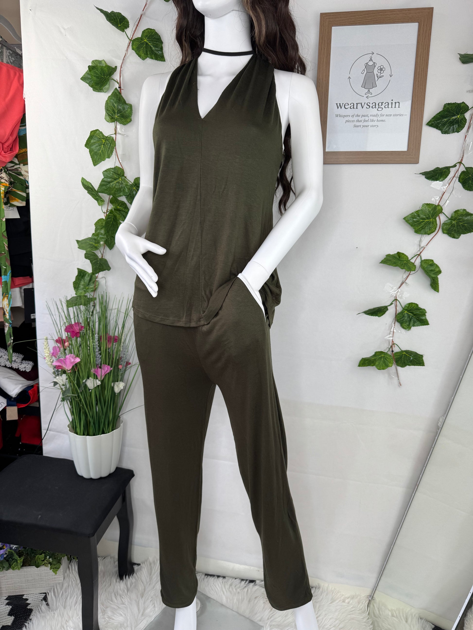 Women’s lounge set – halter neck top & soft stretch trousers – comfy co-ord size 8/10