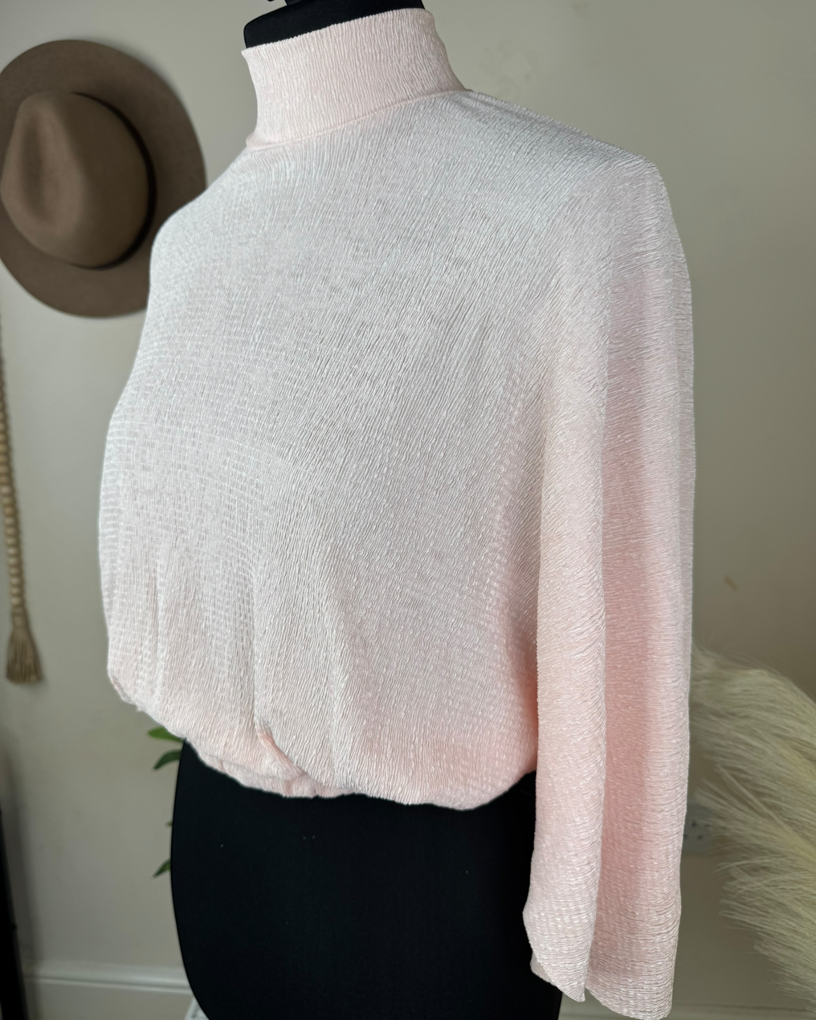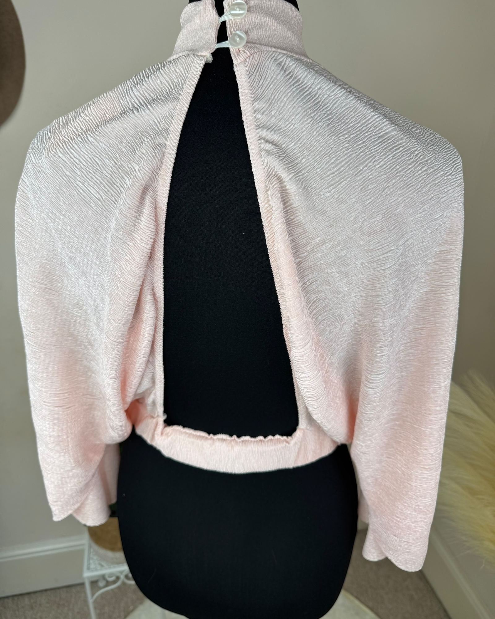 Women’s High Neck Evening Blouse – Blush Pink Open Back Top UK 8 & UK 12