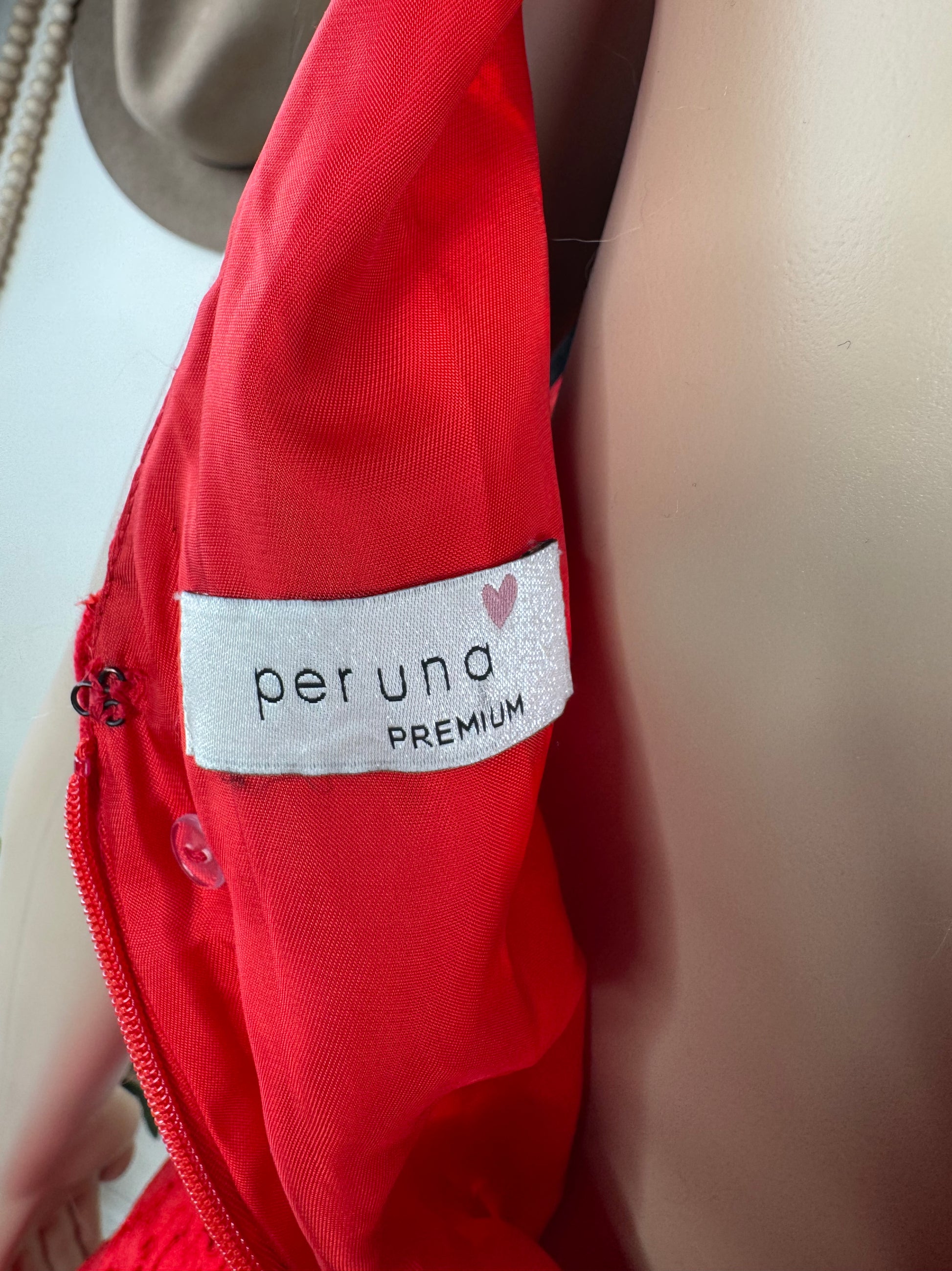 Elegant women’s red lace midi dress, sleeveless with v-neckline. Perfect for evening, weddings and parties. Preloved, restyled, ready for you.