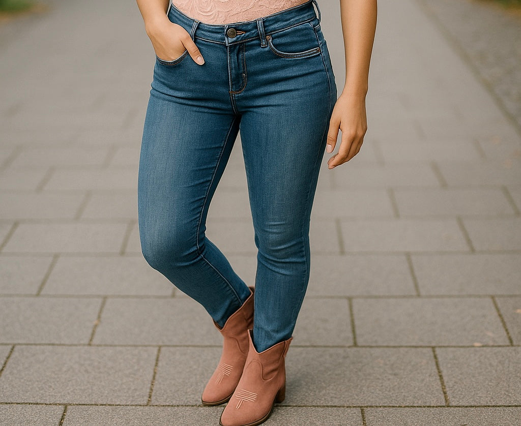 perfect for everyday wear. Mid-rise with a flattering fit, button fastening, and classic five-pocket design. Easy to style with tops, blouses, or knitwear for all seasons.