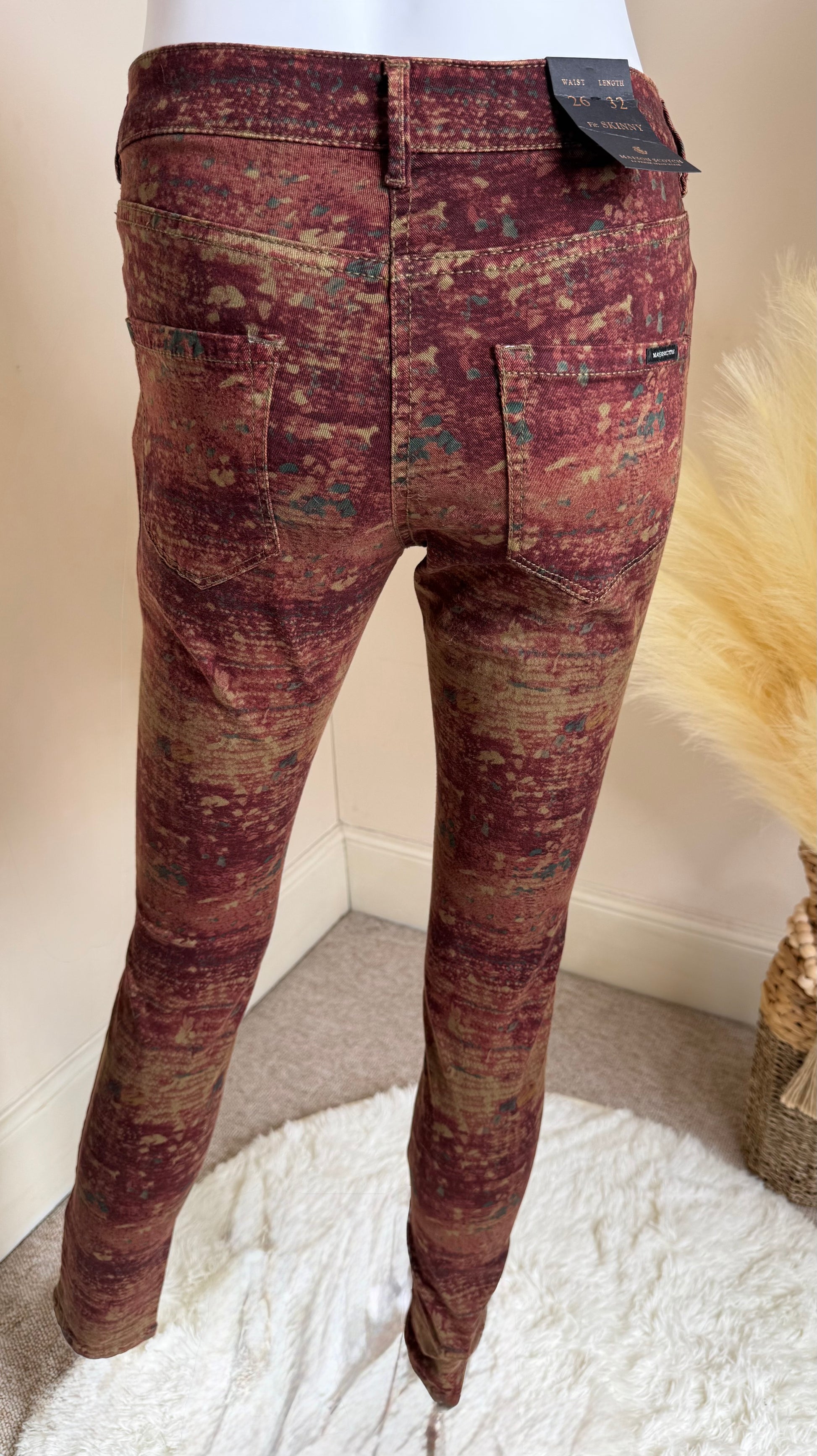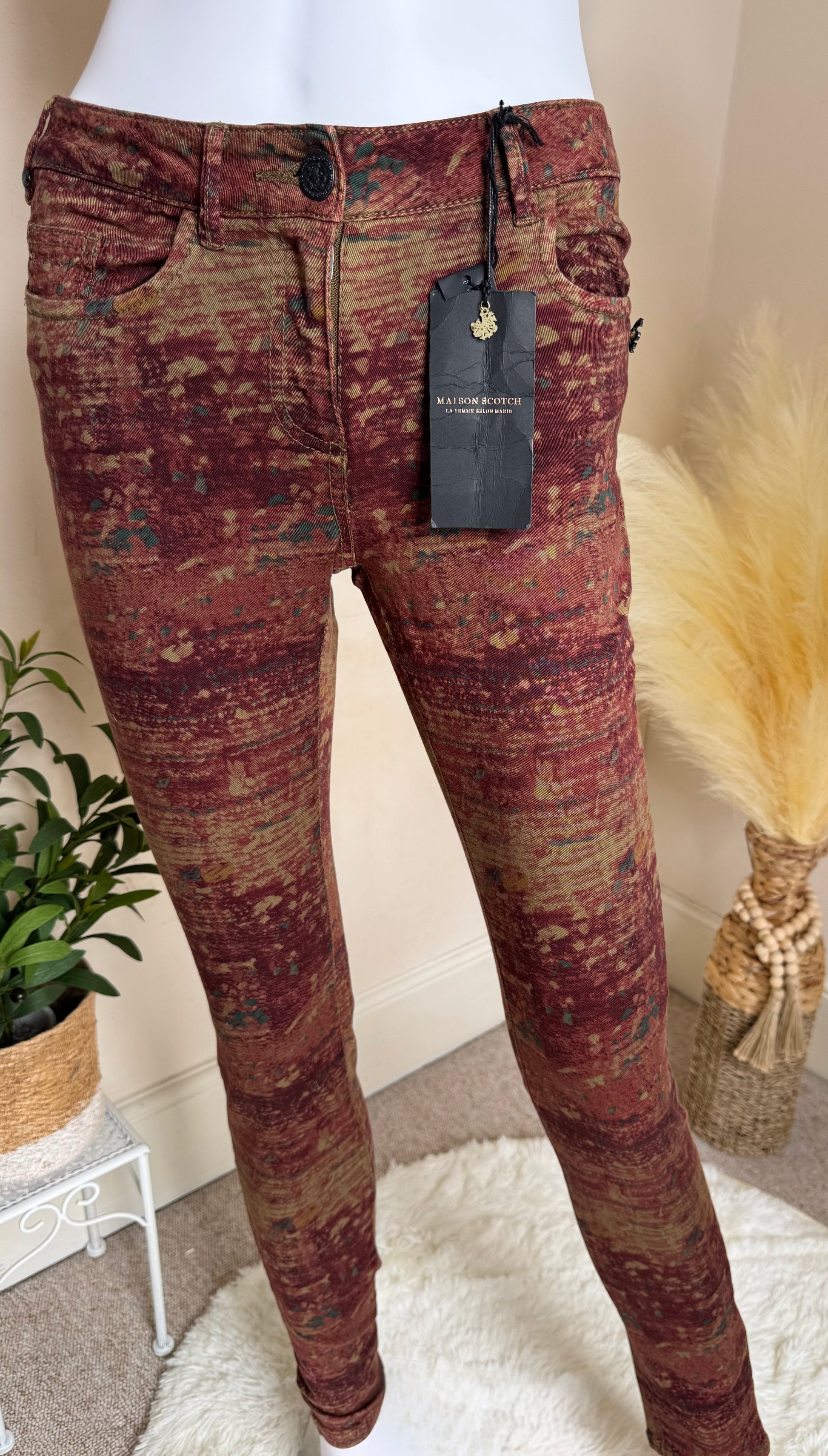 Women’s Jeans UK Size 8 W26 L32 – Multicolour Print Stretch Denim Trousers Maison Scotch