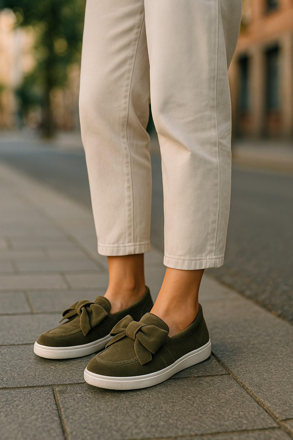 Women’s Slip-On Bow Trainers – Khaki Green – UK 5 / EU 38 Casual Shoes