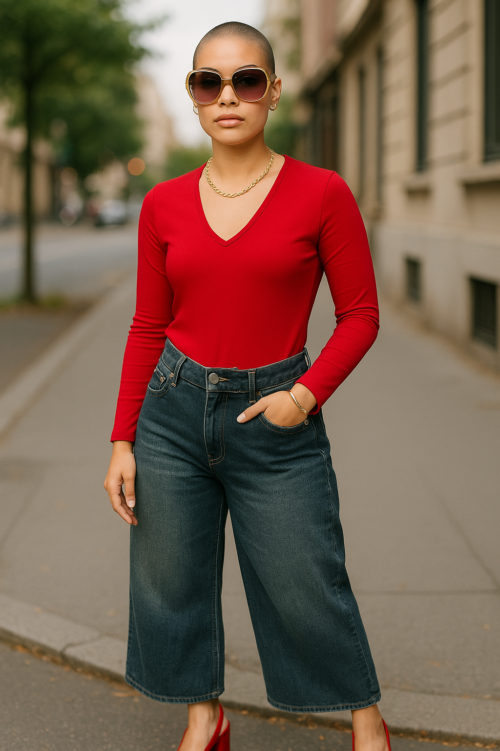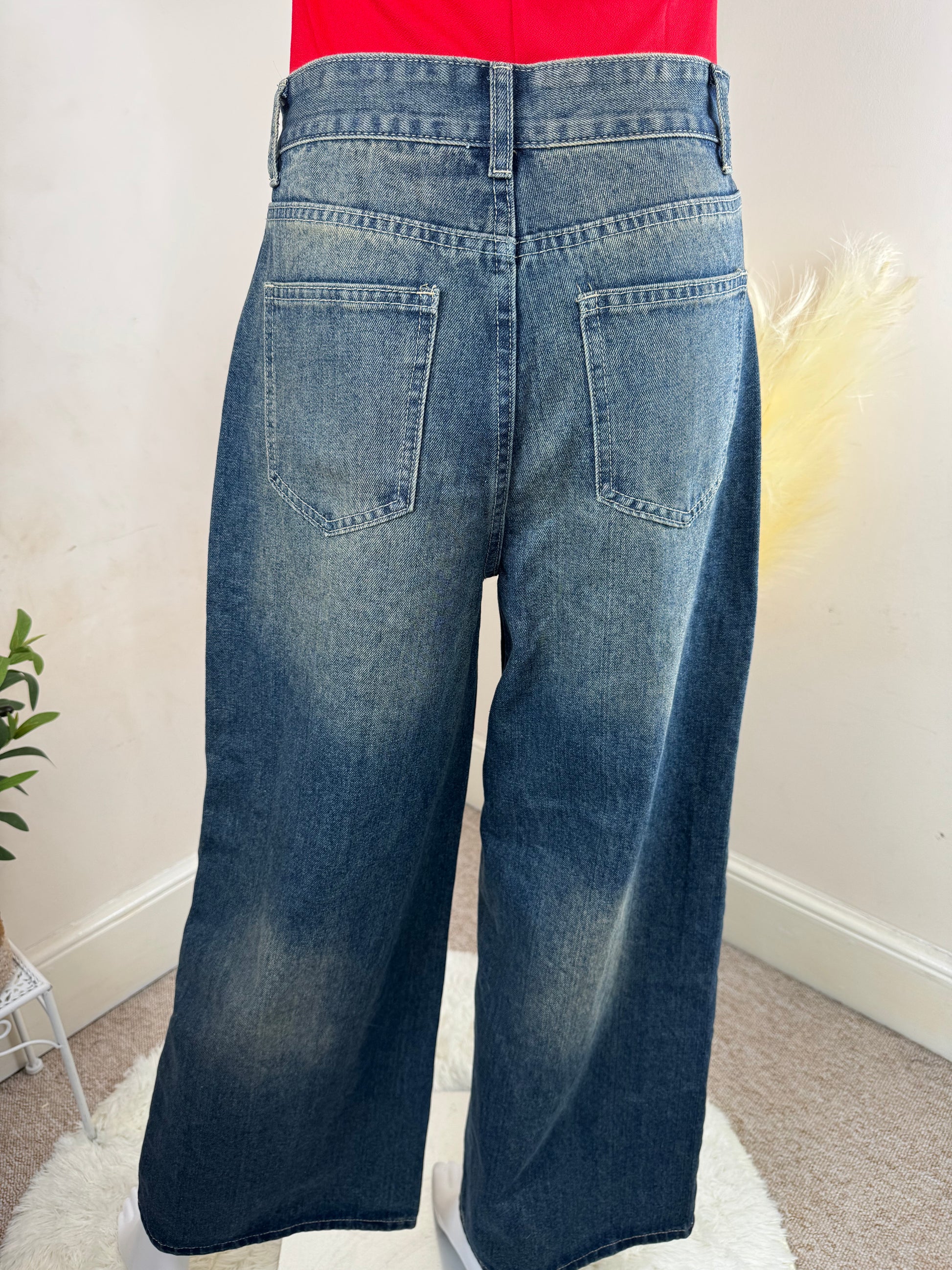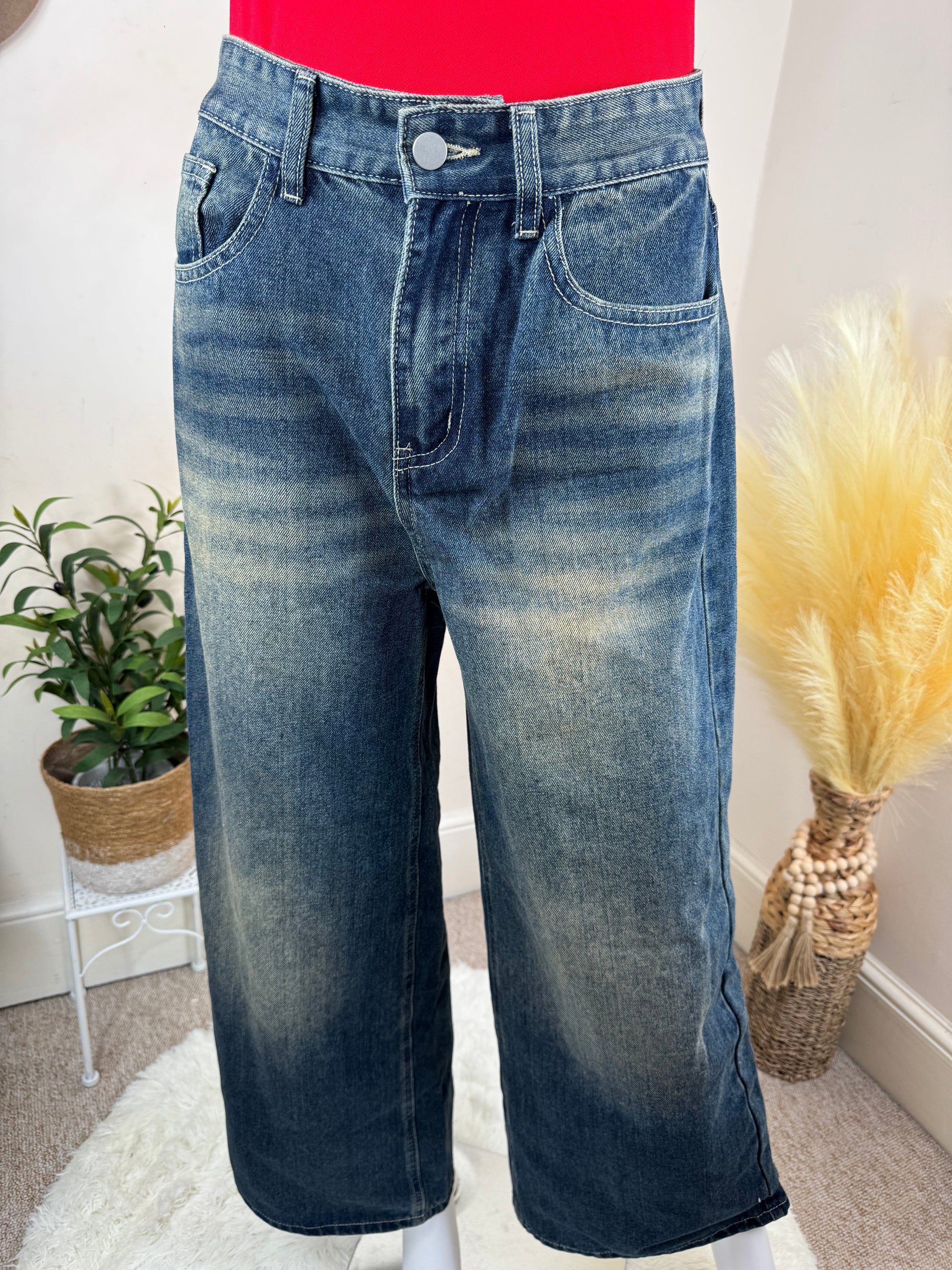 Women’s Wide Leg Jeans – UK Size 8 – High Waist Cropped Denim